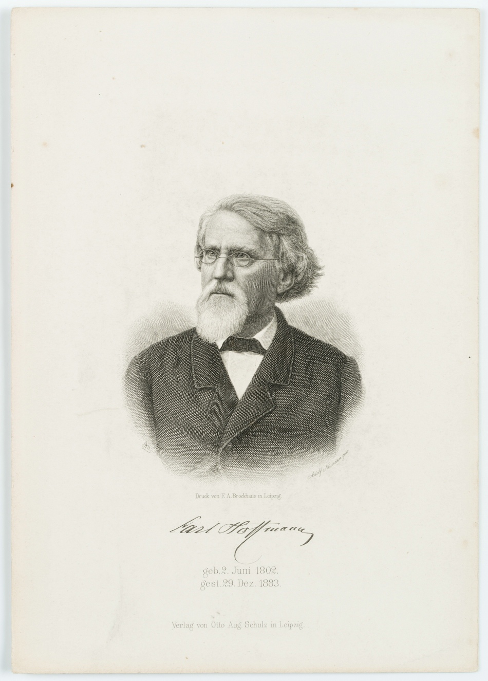 - Bezeichnung: Unten signiert und betitelt: “Karl Hoffmann / geb. 2. Juni 1802. gest. 29. Dez. 1883.”