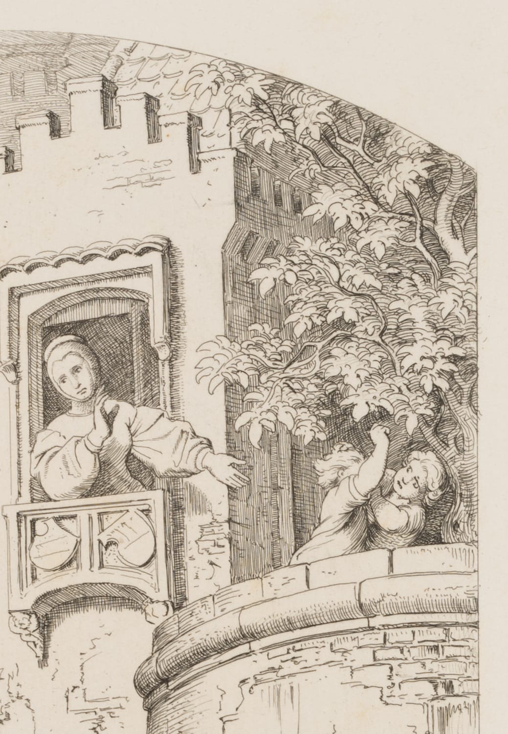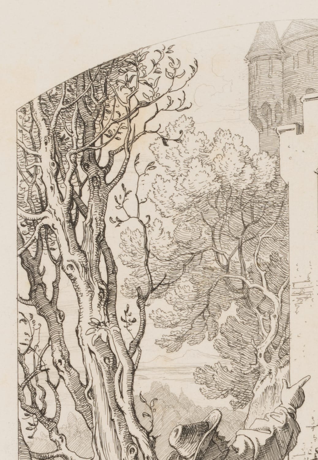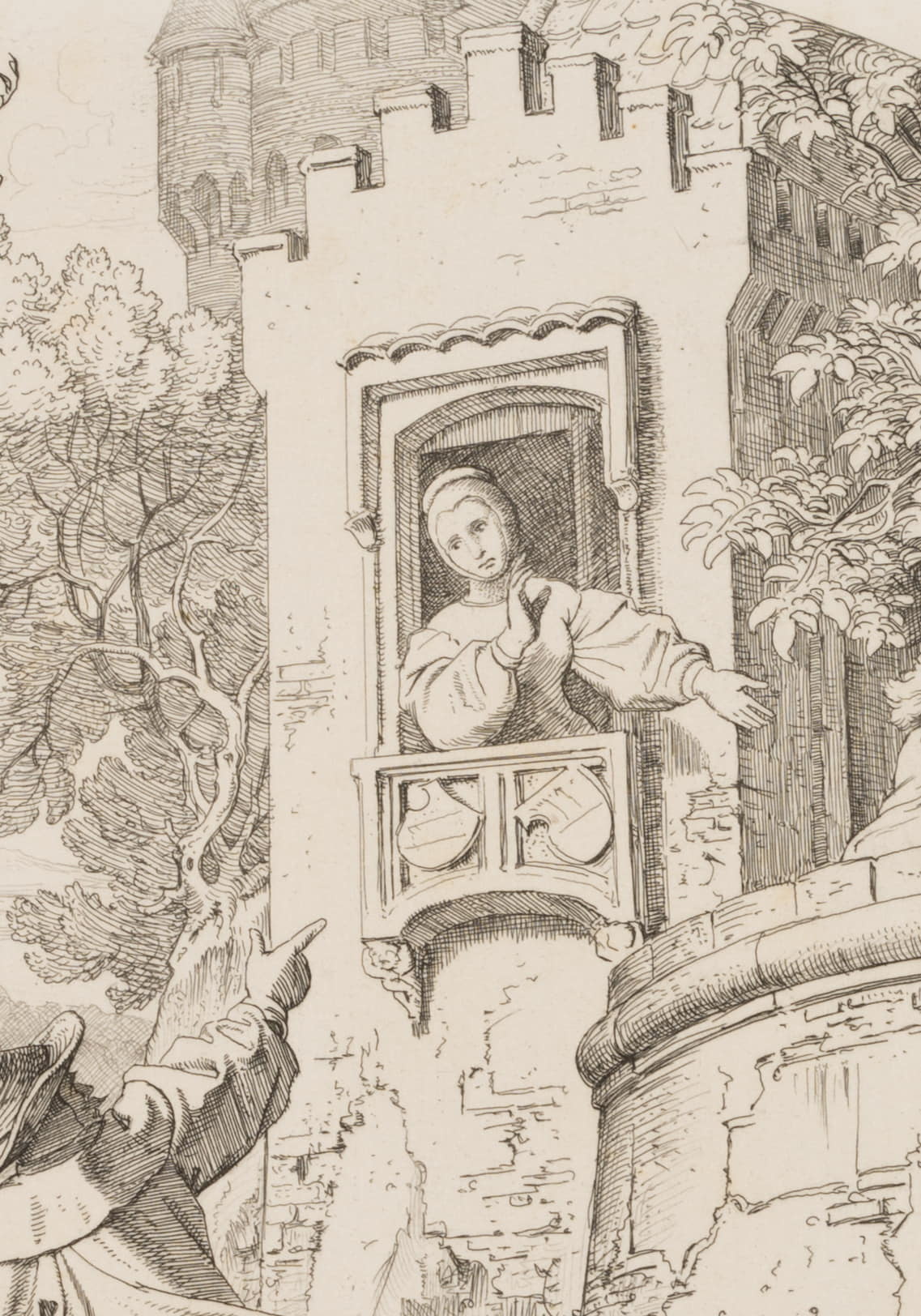 Eugen Napoleon Neureuther (1806 Munich – 1882 ibid.) after Moritz von Schwind (1804 Vienna – 1871 Munich), Illustration of “Vom Reitersmann” from Georg Scherer’s “Old and New Children’s Songs, 19th century, Etching