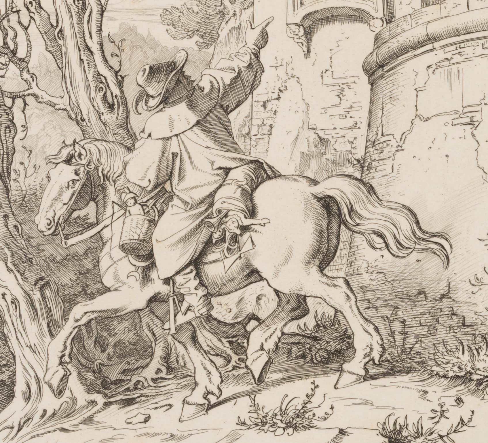 Eugen Napoleon Neureuther (1806 München – 1882 ebd.) nach Moritz von Schwind (1804 Wien – 1871 München), Illustration zu “Vom Reitersmann” aus Georg Scherer “Alte und neue Kinderlieder”, 19. Jahrhundert, Radierung