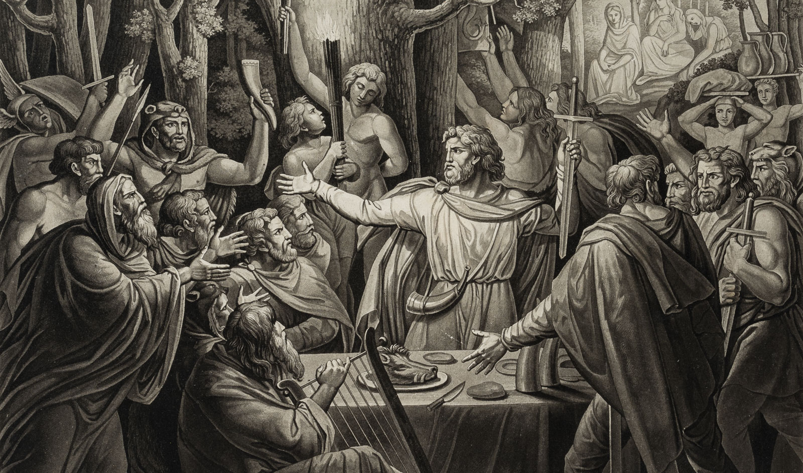 Wilhelm Johannes Esaias Nilson (*1788 ) nach Johann Friedrich Dieterich (1787 Biberach an der Riss – 1846 Suttgart), Livilis Verschwörung im Haine, 1827, Aquatinta