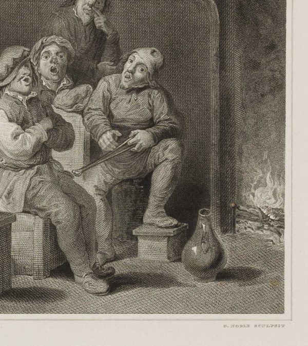 - Description: Copper engraving with a genre-like depiction of a group of peasants in front of a fireplace.