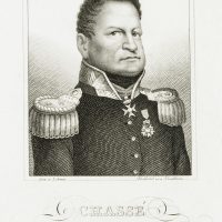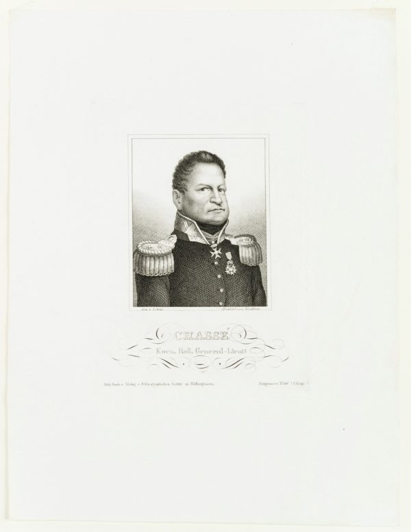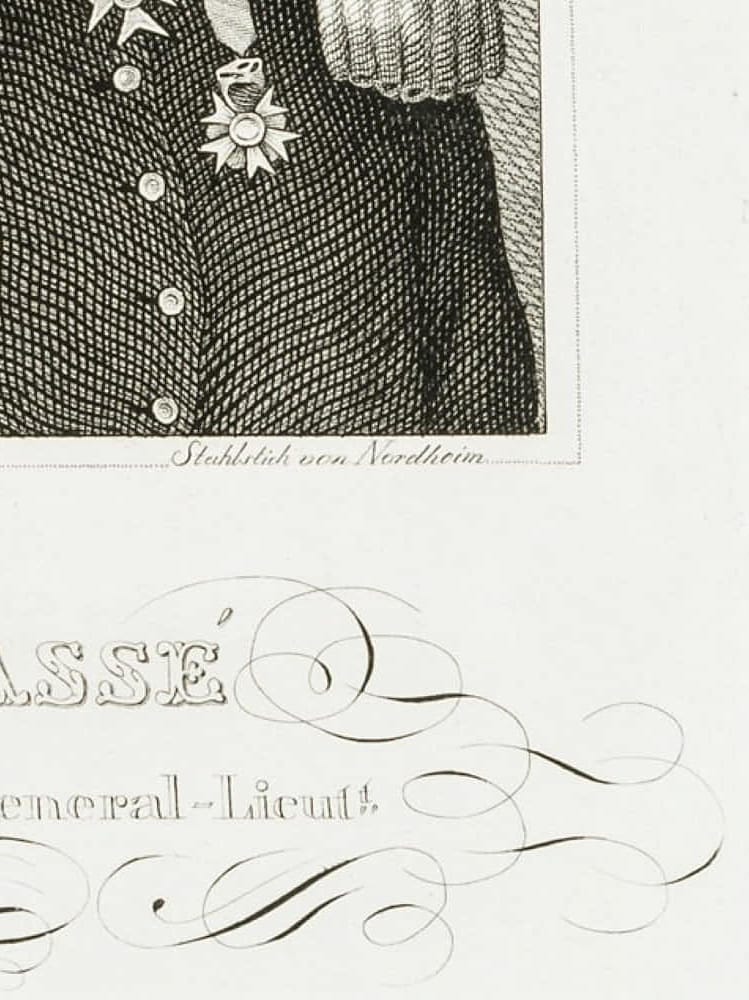 - Bezeichnung: Links unterhalb des Bildes signiert mit “Gem. v. Lebrun” und rechts mit “Nordheim”. Darunter mit dem Namen des Dargestellten “CHASSÉ” bezeichnet.