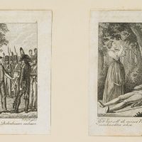 Johann Nussbiegel (1750 Nürnberg – 1829 ebd.) nach Thomas Weber (1761 Augsburg – 1828 ebd.), Literarische Illustration aus einer Folge von 12 Blättern. Historische, Liebes- und Familienszenen, 1800, Radierung