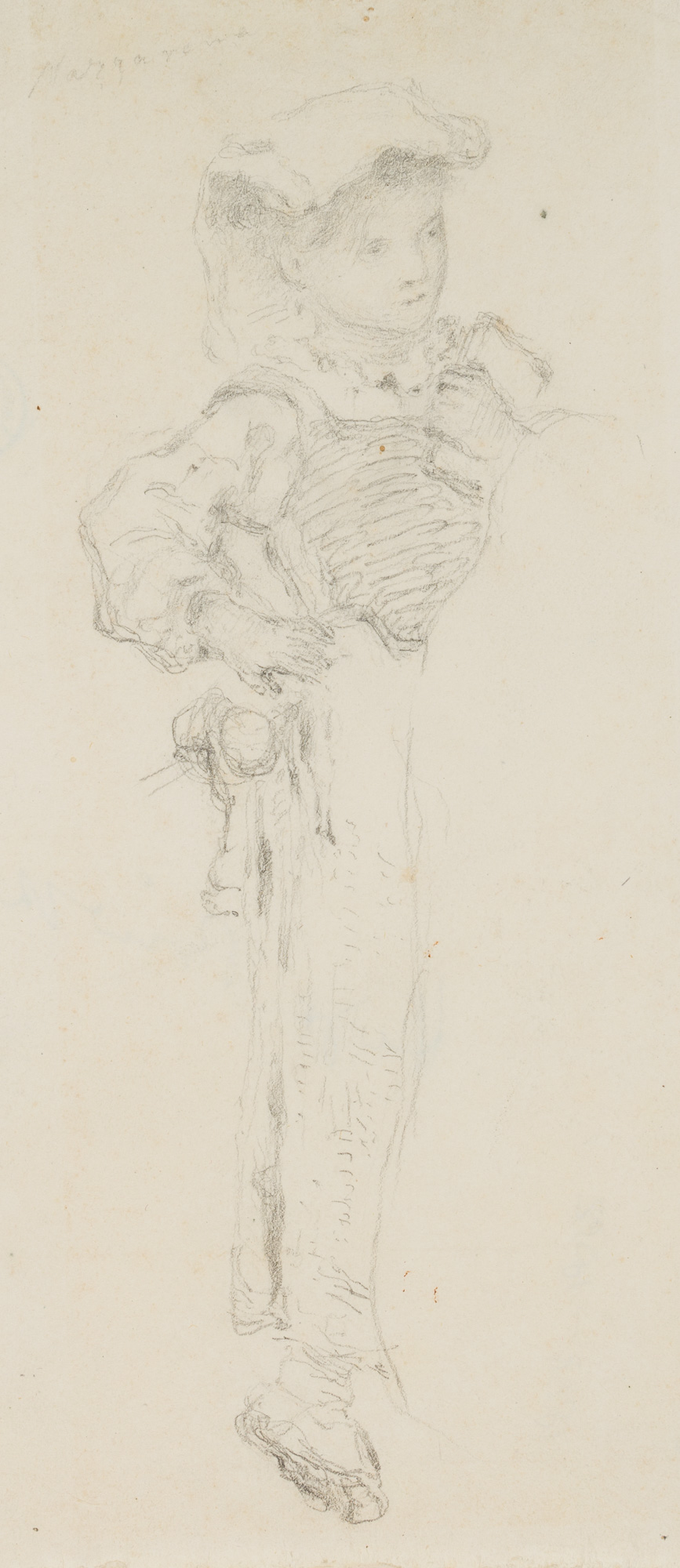 Otto Brandt (1828 Berlin – 1892 Olevano Romano), BRANDT, Sketch of a Child in Italian Costume, 19th century, Pencil