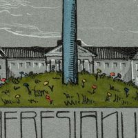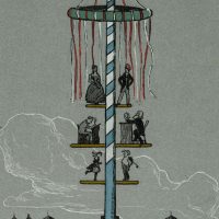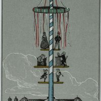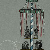 Oskar Burger (1892 – 1968 ), Theresianum mit traditionellem Maibaum, 1912, Federzeichnung