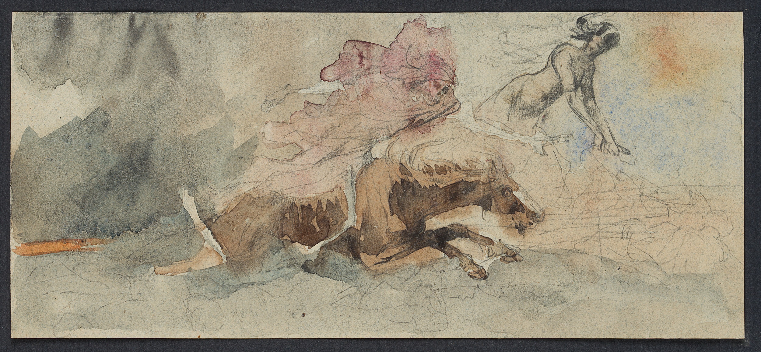 Otto von Faber du Faur (1828 Ludwigsburg – 1901 München), Reitender Tod, 19. Jahrhundert, Aquarell