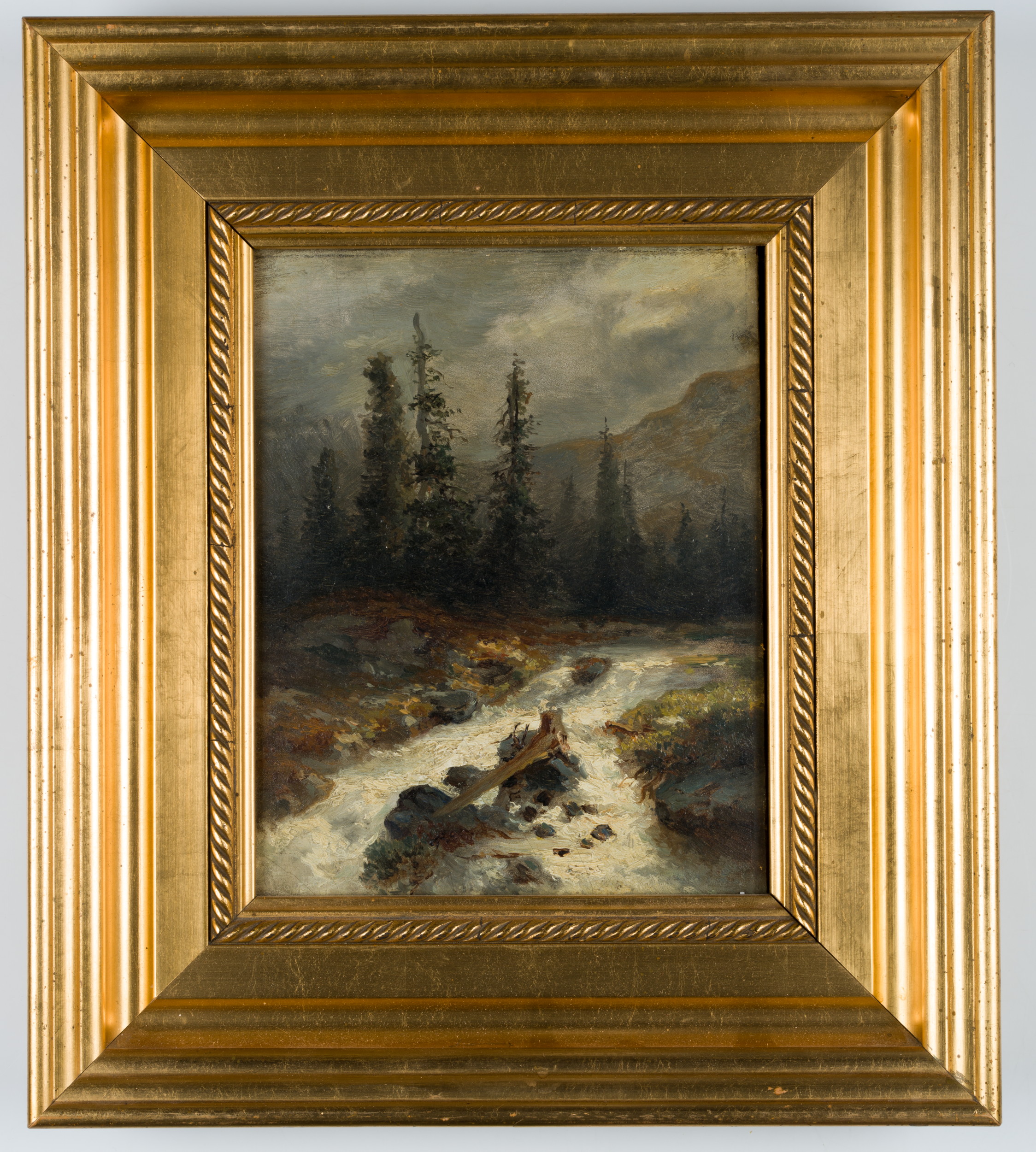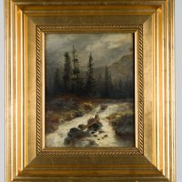 - Beschreibung: Sehr schöne und stimmungsvolle Landschaftsdarstellung eines Gebirgsflusses