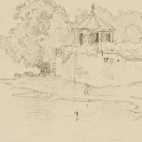 Otto Gebler (1838 Dresden – 1917 Munich), Munich School, The Pavilion by the Lake Charming nature study, 19th century, Pencil
