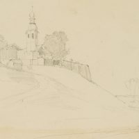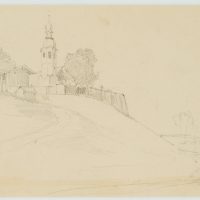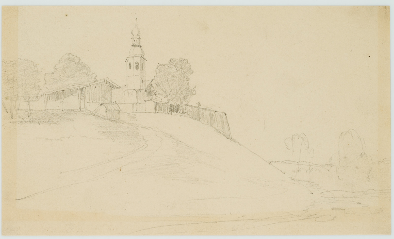Otto Gebler (1838 Dresden – 1917 Munich), Munich School Landscape with a church on a hill, 19th century, Pencil