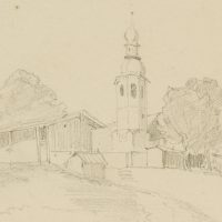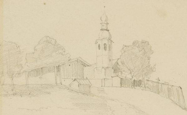 - Description: Very charming, finely drawn landscape with a somewhat elevated church and a wooden shed. The German painter Otto Gebler studied in Dresden from 1858, later in Munich under Karl von Piloty. From his numerous paintings, which he exhibited from 1864 onwards in Berlin, Dresden and Munich, sometimes also in Vienna, Paris and London, several of them found their way into public museums. The painting ‘Reinekes Ende’ (Fox and Three Dachshunds), for example, is in the Pinakothek in Munich. He was an honorary member of the Munich Academy of Fine Arts, later he also received the title of professor. His estate consists of about 50 oil paintings and sketches, 17 sketchbooks and over 60 drawings.
