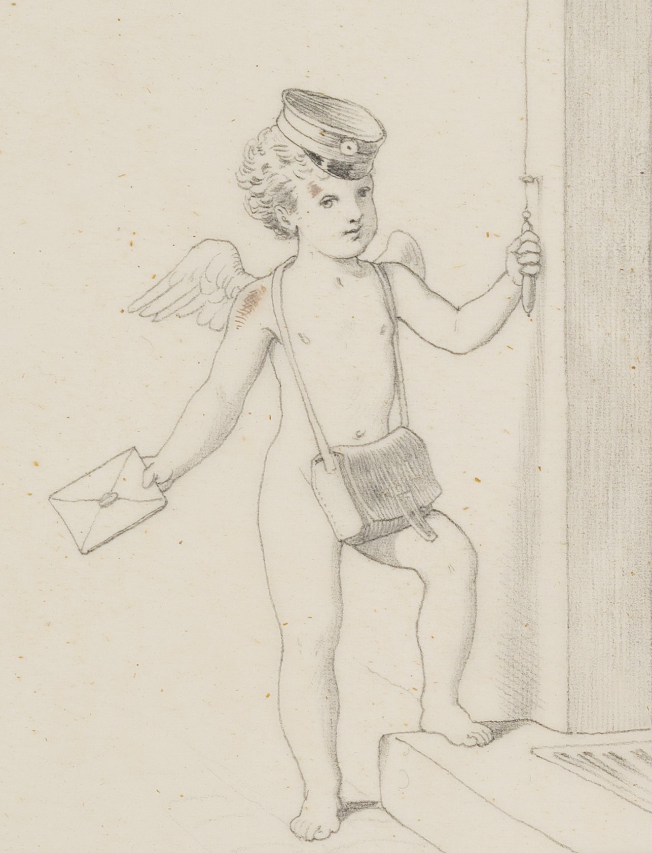 - Schlagworte: Brief, Freundschaft, Liebe, Post, Gebrauchsgrafik, Putto, Amor, Cupido, Deutsch, Mythologie, Genre, Deutschland, Figürlich, 1850-1899