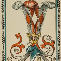 - Beschreibung: Bezeichnet unten in der Darstellung “O.H.”, benannt “Schwerin”. Darstellungs des Wappens derer von Schwerin, einem alten mecklenburgischen und pommerschen Adelsgeschlechts. Markant ist der gekrönte, offene Helm, auf dem drei Straußenfedern zu sehen sind, je mit einer Raute verwechselter Farbe. Rückseitig ein Kalenderblatt des Monats Oktober. Aus den “Münchener Kalendern”, gestaltet von Otto HUPP in den Jahren 1885-1936.