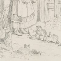 Oskar Pletsch (1830 Berlin – 1888 Niederlößnitz (Dresden)) Follower, Girl with playing kittens, , Pencil