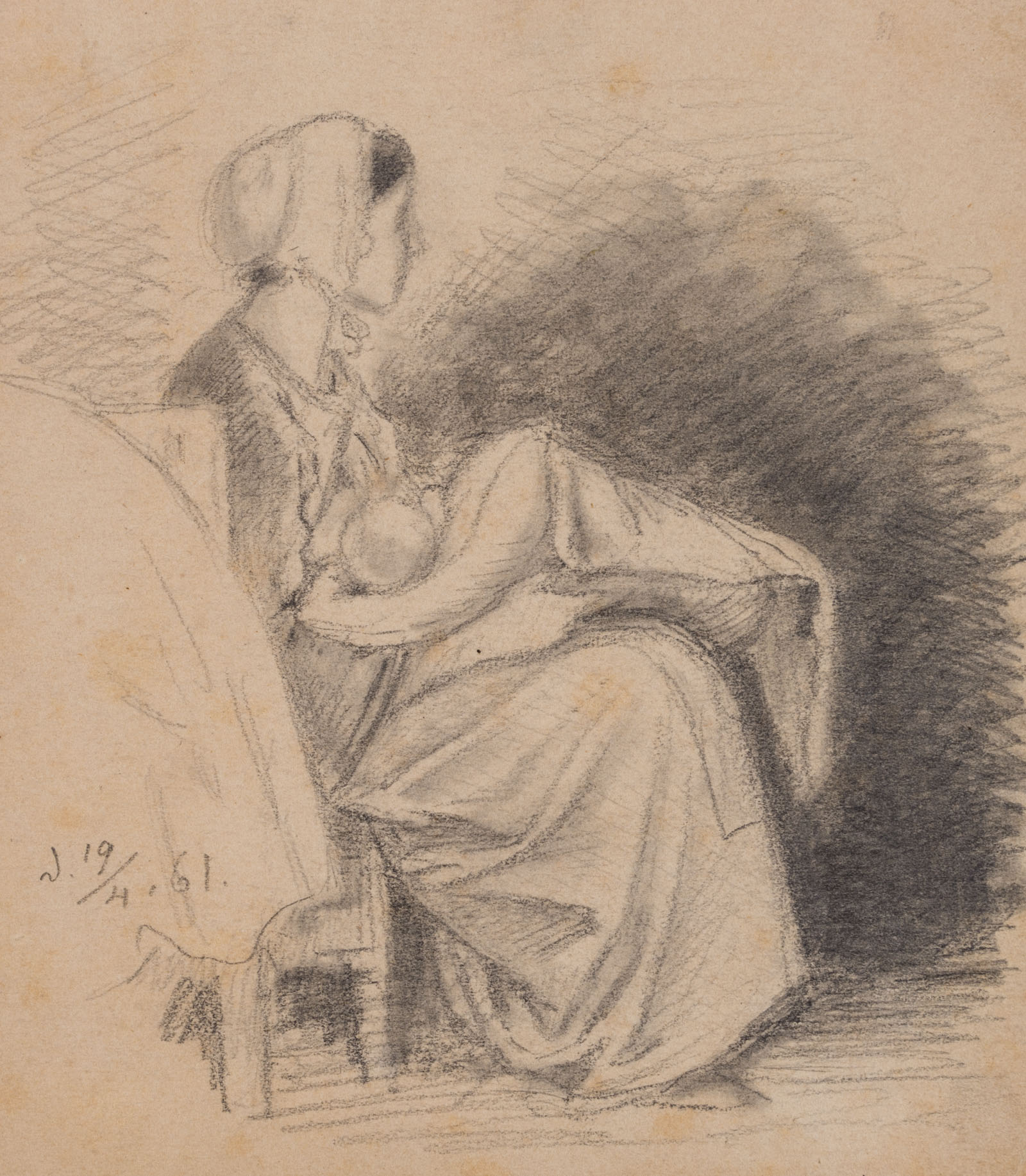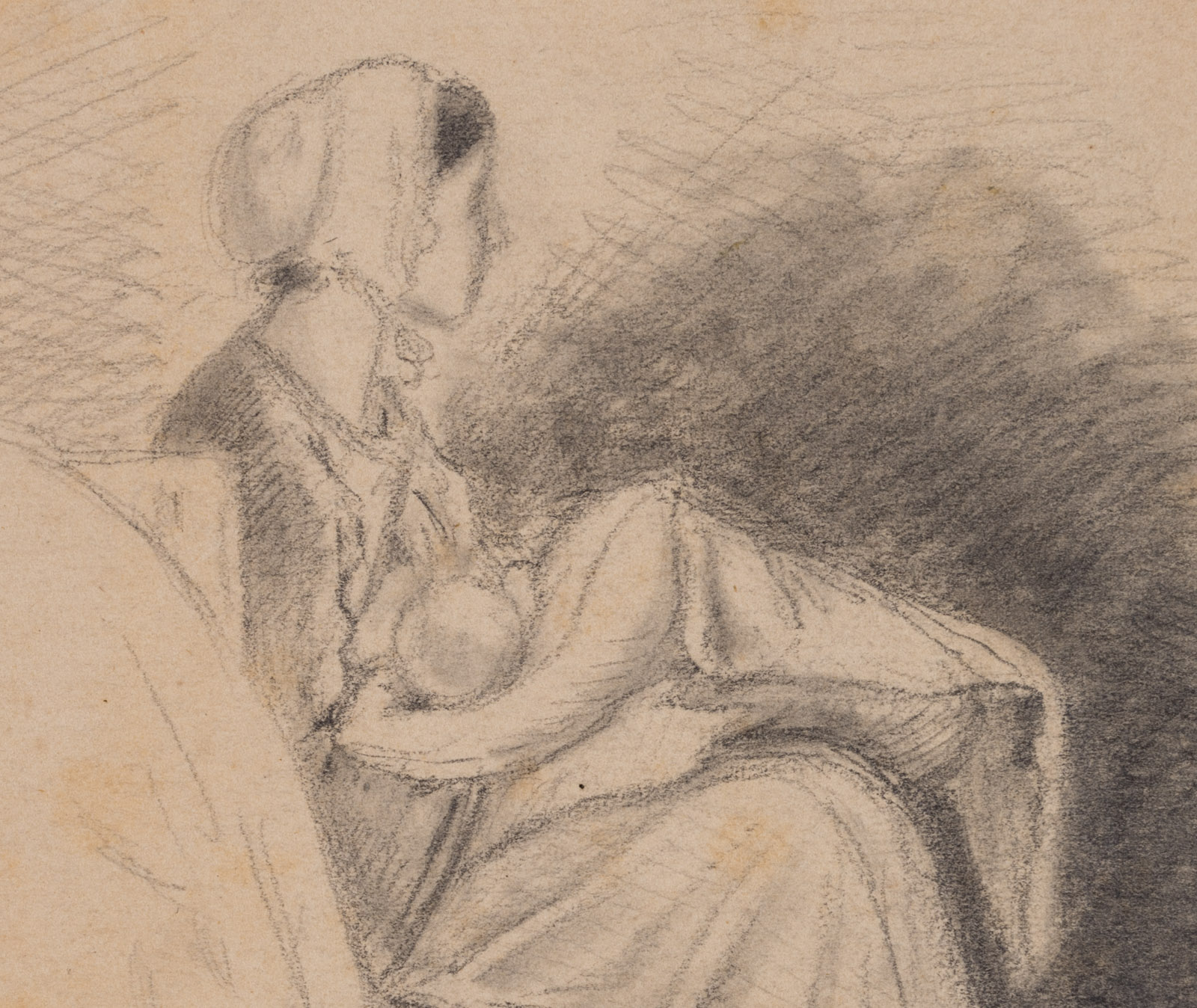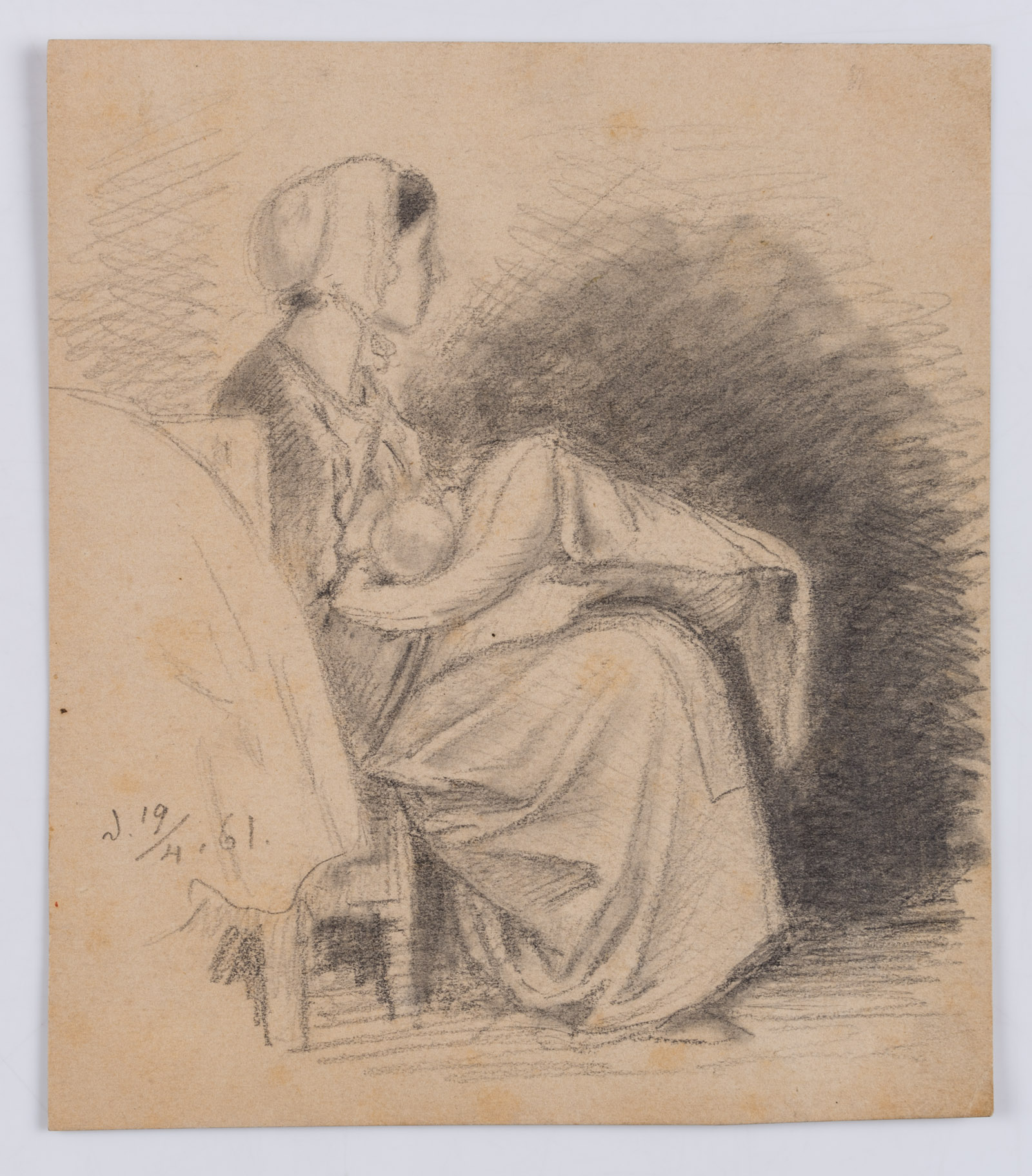 - Description: Study sketch from a domestic scene in the interior of a parlour with a nursing mother or wet nurse.