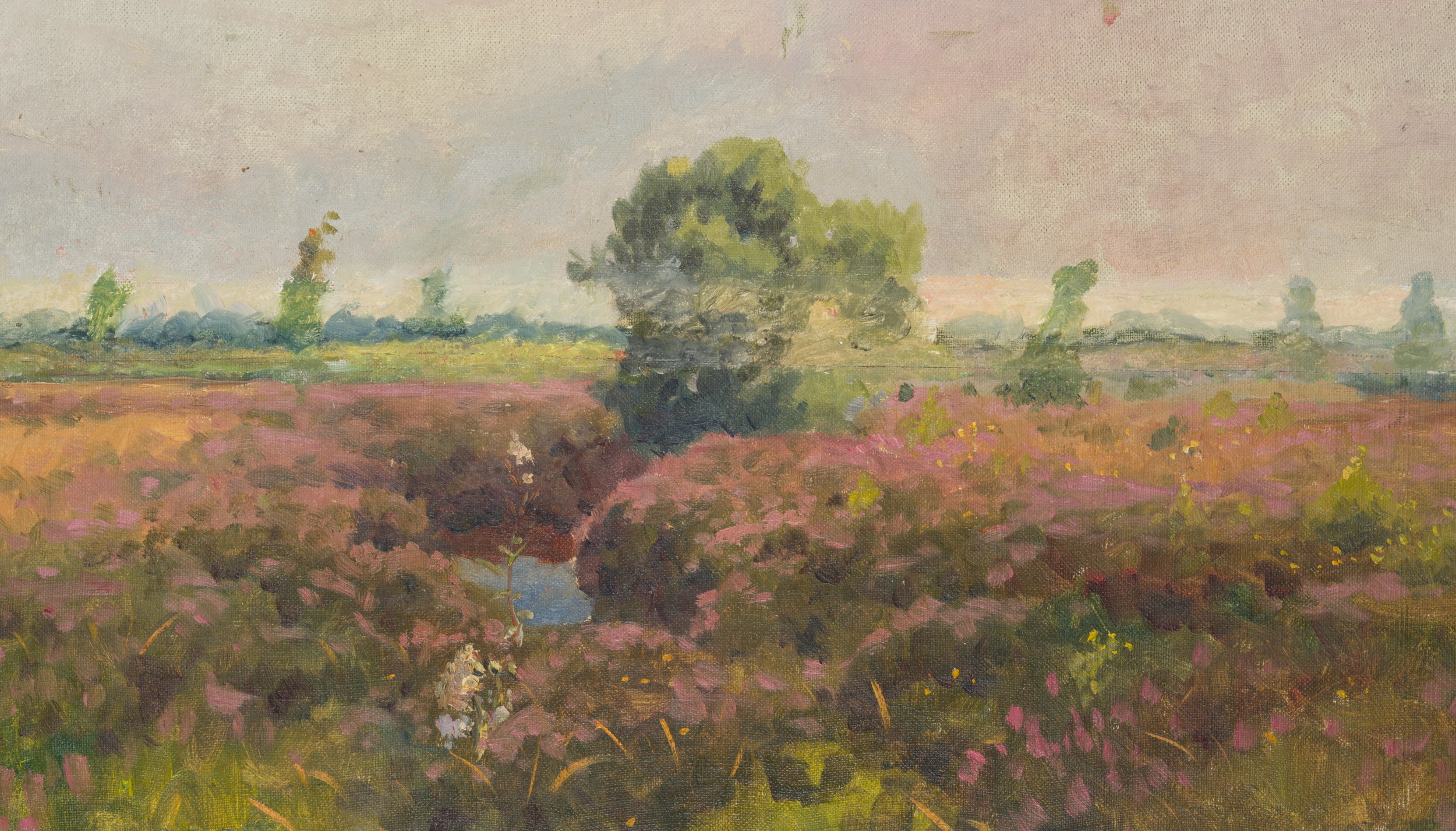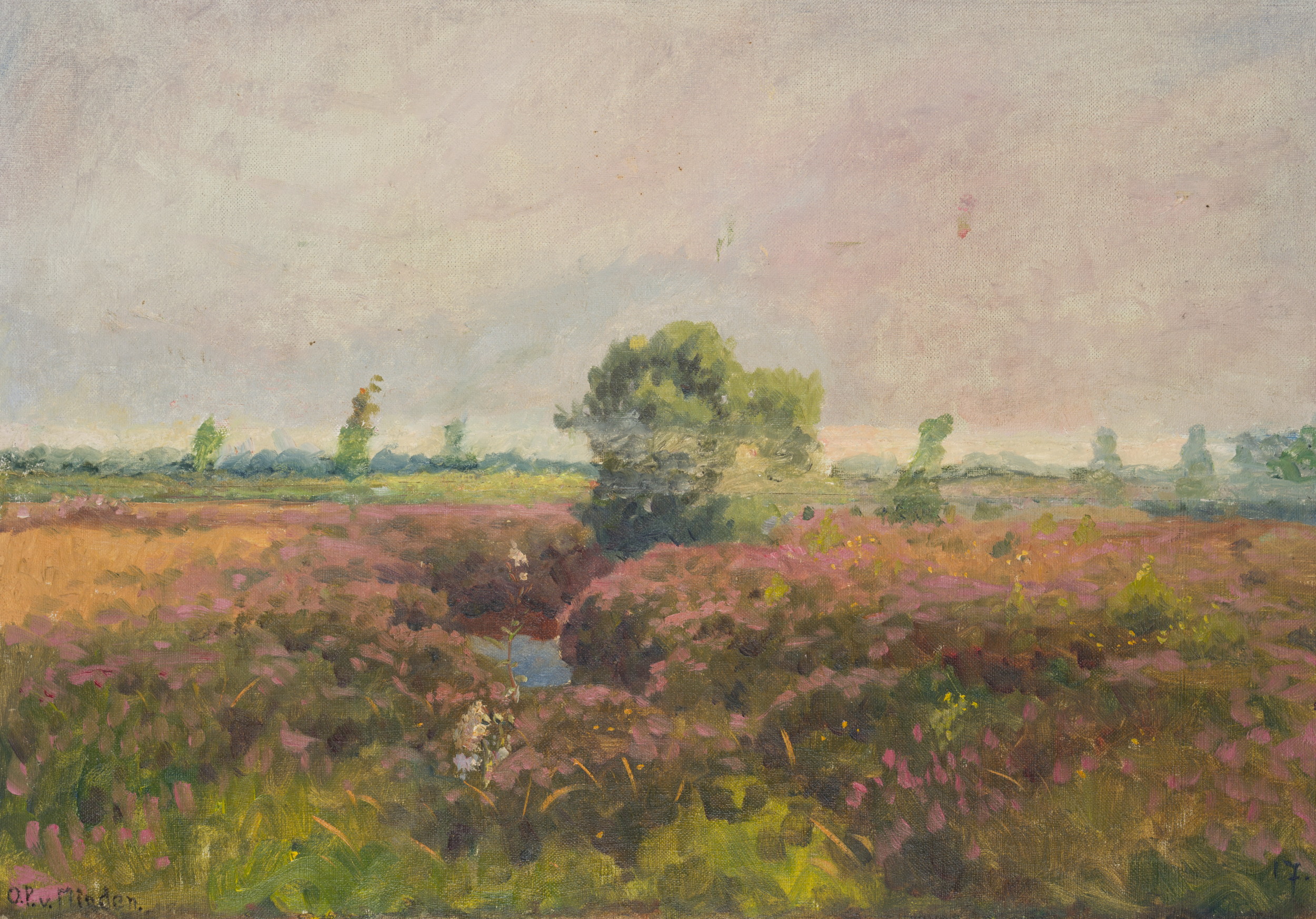 - Keywords: Moor, swamp, heath, natural landscape, northern Germany, summer, heather blossoms, 20th century, Impressionism, Landscape, Germany,