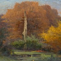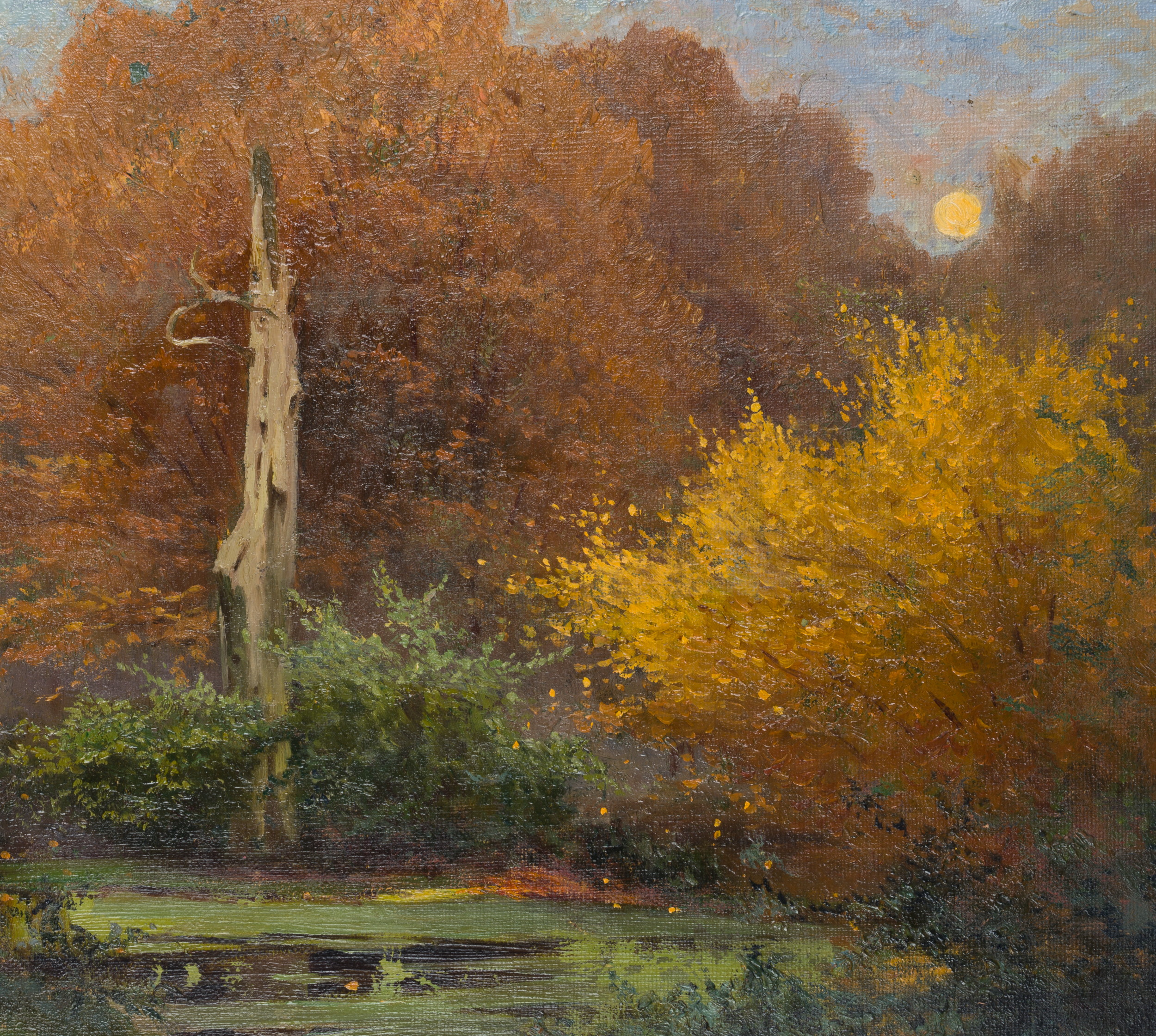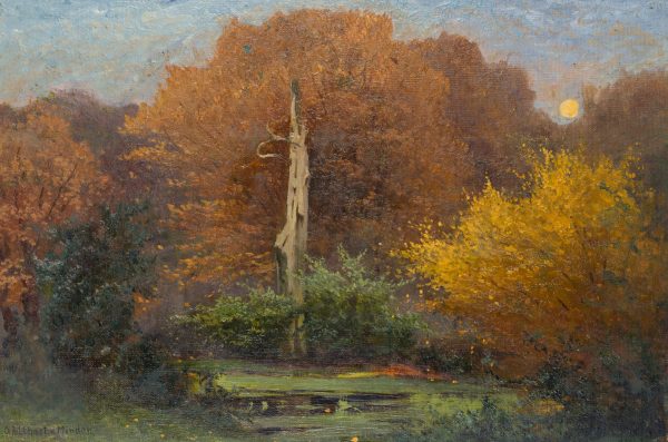 - Keywords: Forest, woodland, forest pond, pond, pond, moonlight, autumn, leaves, death, dead tree, 20th century, Impressionism, Landscape, Germany,