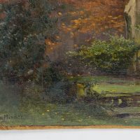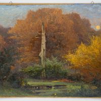 Olga Potthast von Minden (1869 Sanderbusch – 1942 Varel), Woodland in the moonlight with still water in front of a dead tree surrounded by golden autumn leaves, c. 1910, Oil