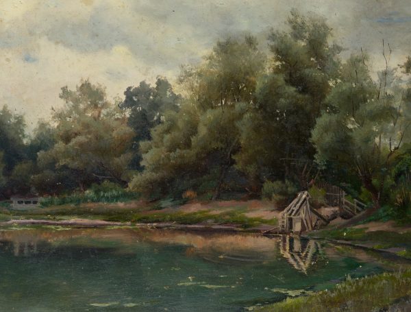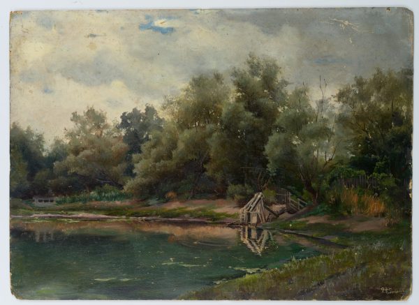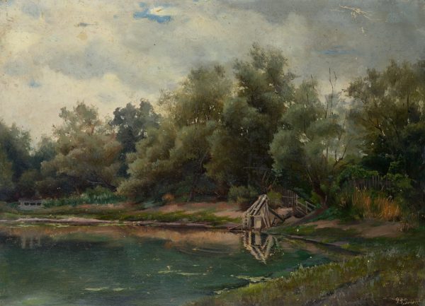 Olga Potthast von Minden (1869 Sanderbusch – 1942 Varel), Small cottage by the lake, 1905, Oil