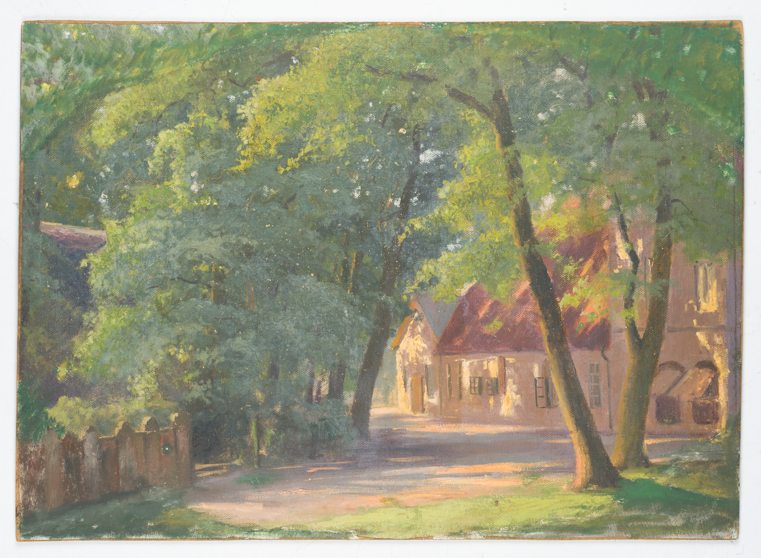 Olga Potthast von Minden (1869 Sanderbusch – 1942 Varel), Von Bäumen umsäumter Weg zum Gutshof, , Öl