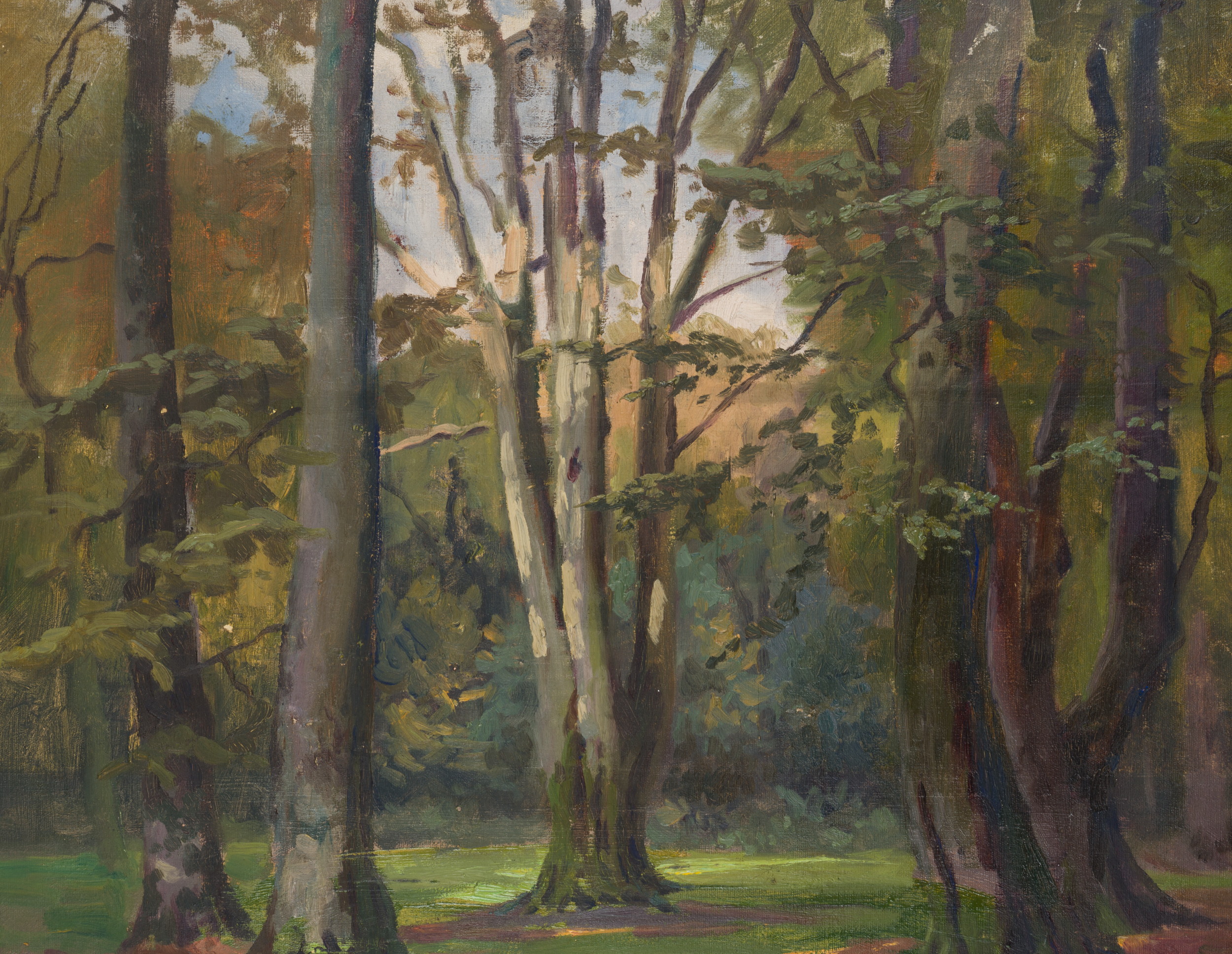 - Schlagworte: Bäume, Waldstück, Wiese, Heimat, Heimatkünstlerin, Landschaft, Deutschland, Impressionismus, 1900-1924
