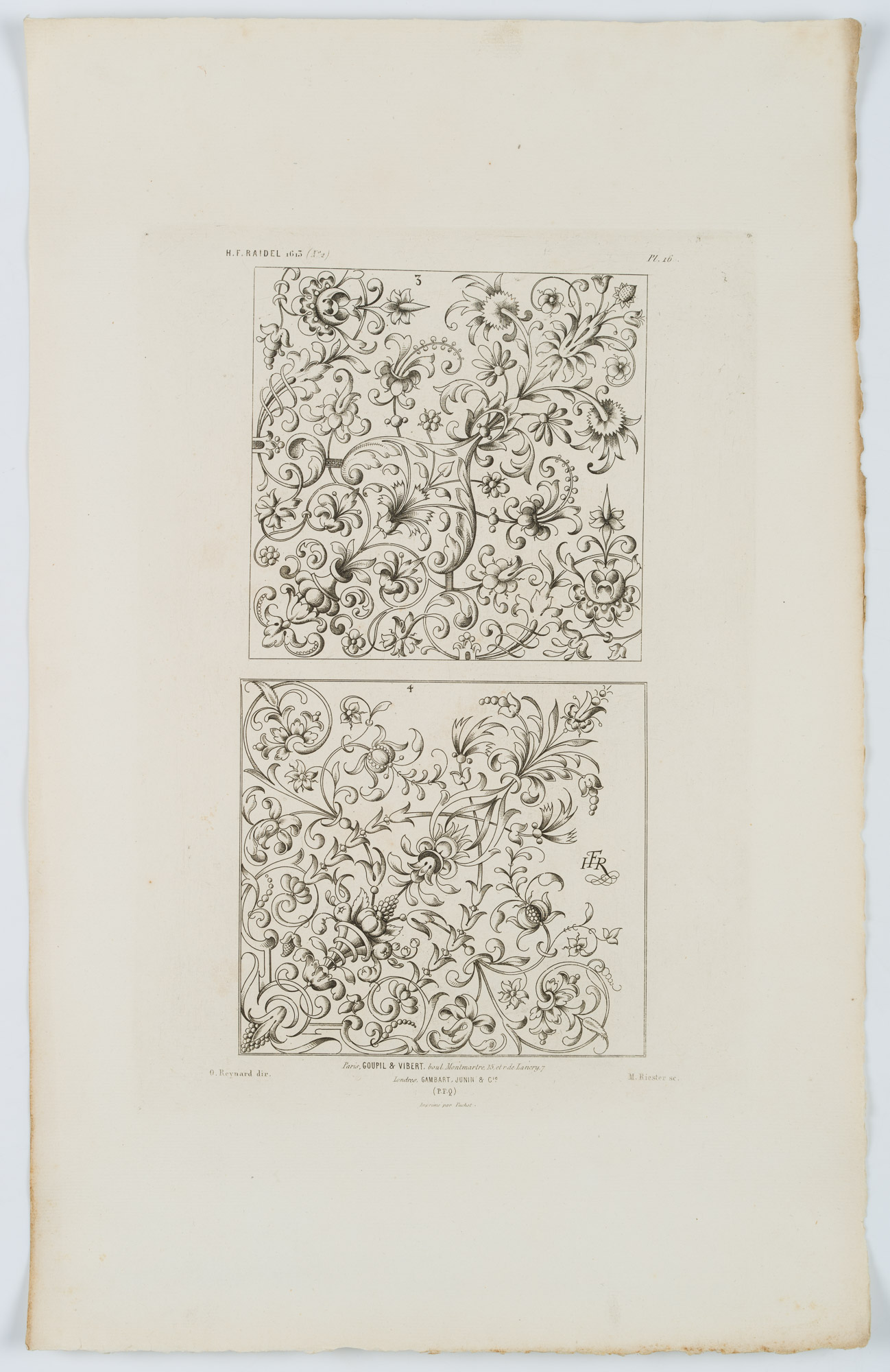 Ovide Reynard (*1817 Auvergne), Mustervorlage. Florale Rankenornamente, nach H. F. RAIDEL von 1613, Blatt Nr. 2, Platte 16, 19. Jahrhundert, Radierung