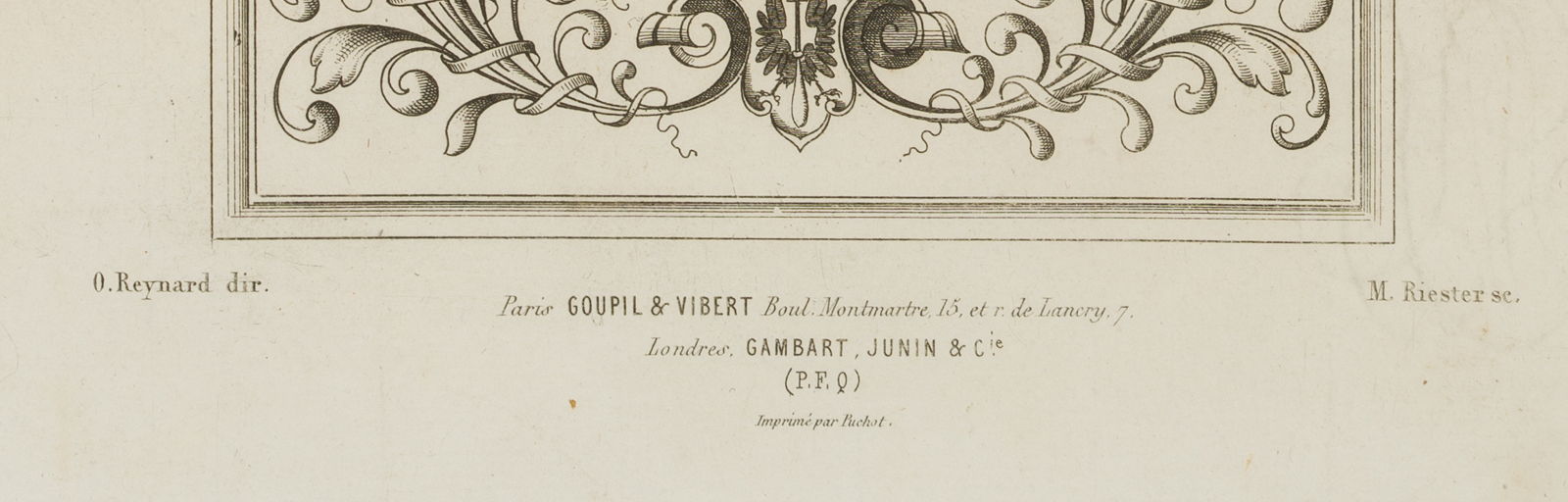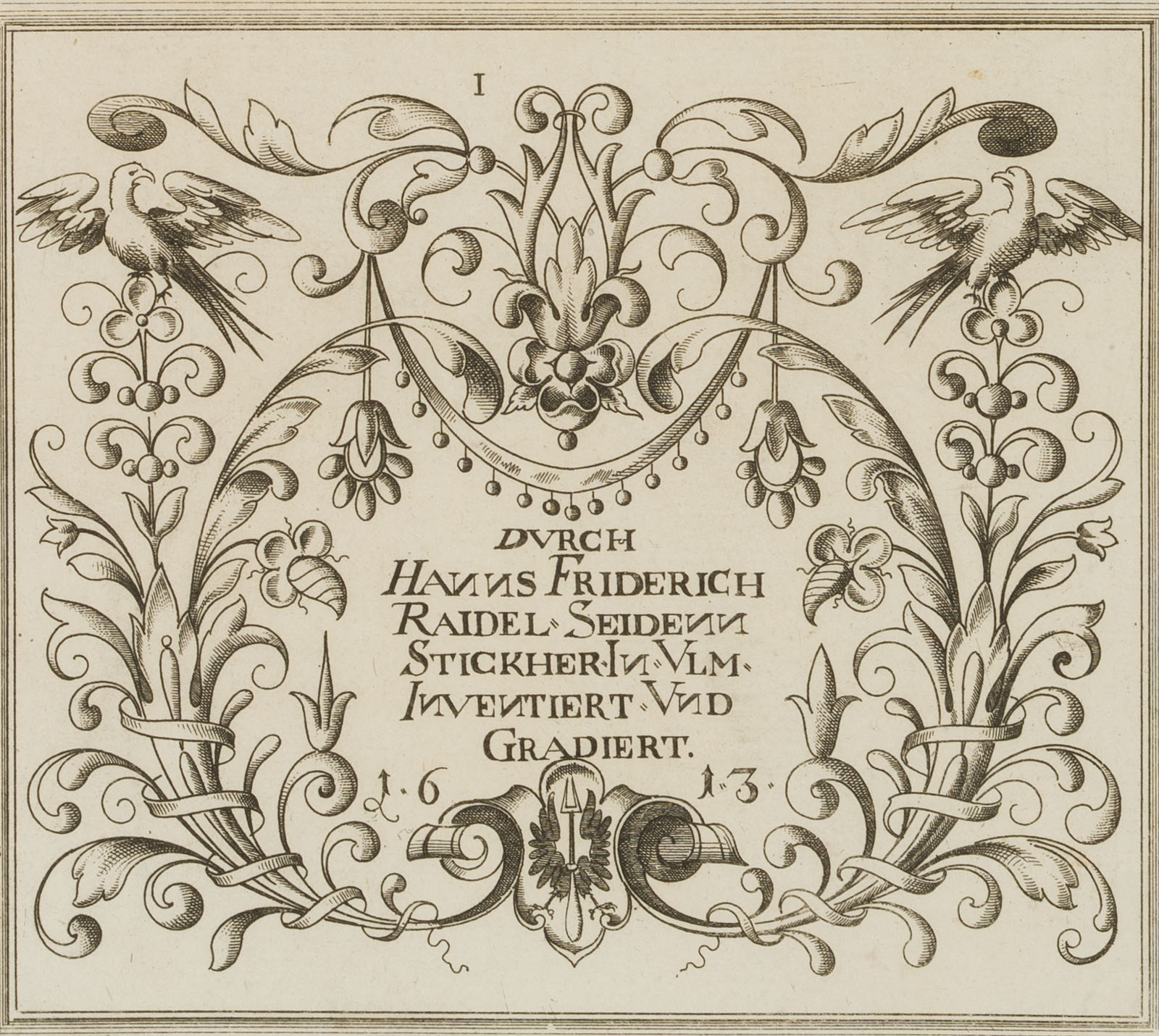 Ovide Reynard (*1817 Auvergne), 2 Mustervorlagen. Florale Rankenornamente, nach Hans Friedrich RAIDEL von 1613, Blatt Nr. 1, Platte 10, 19. Jahrhundert, Reproduktion