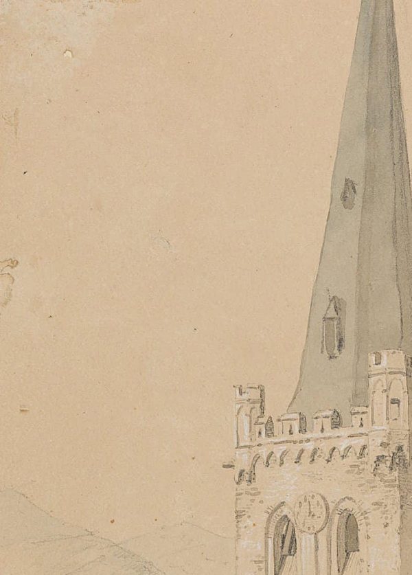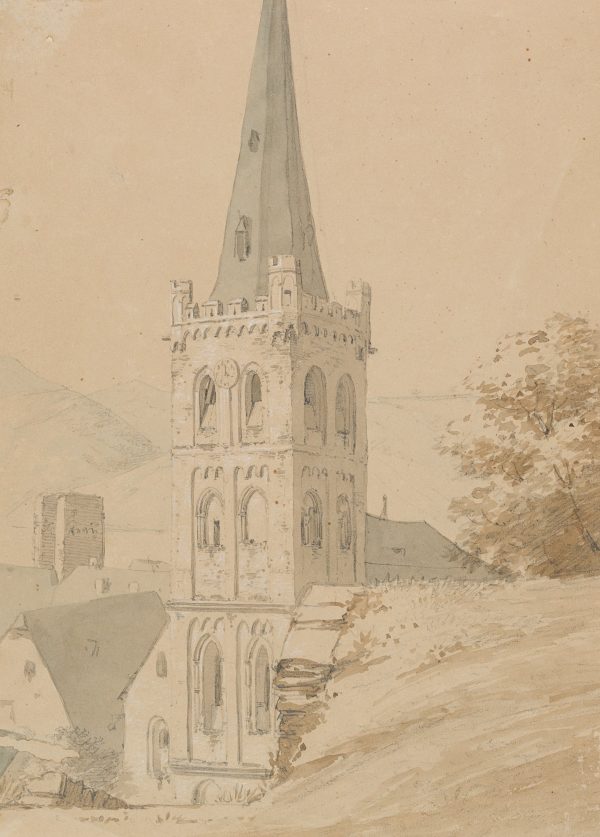 Otto Wagner (1803 Torgau – 1861 Dresden), Kirchturm in Bacharach, 19. Jahrhundert, Pinselzeichnung