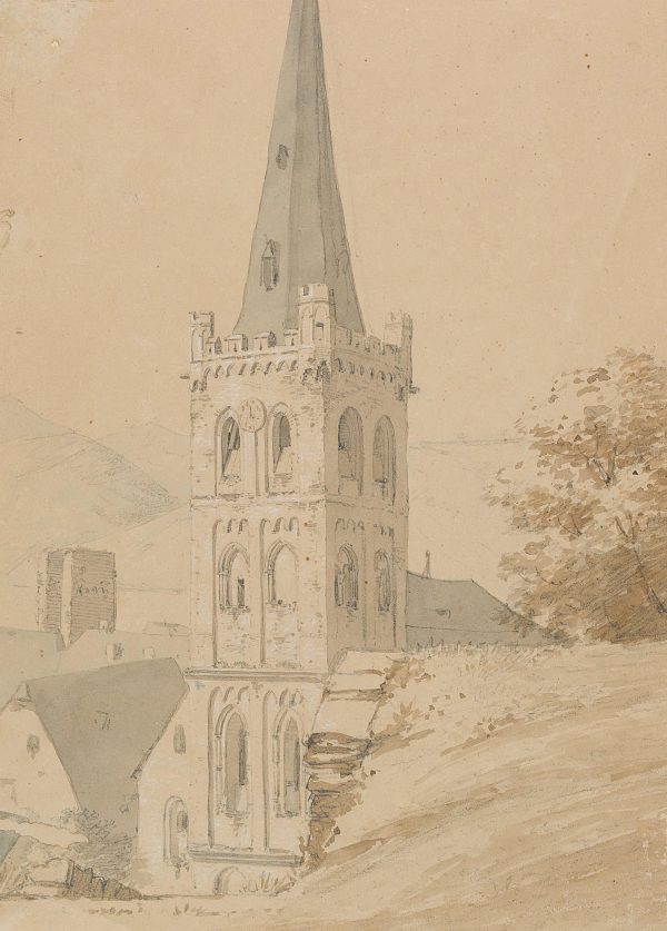 Otto Wagner (1803 Torgau – 1861 Dresden), Church tower in Bacharach, 19th century, Brush drawing