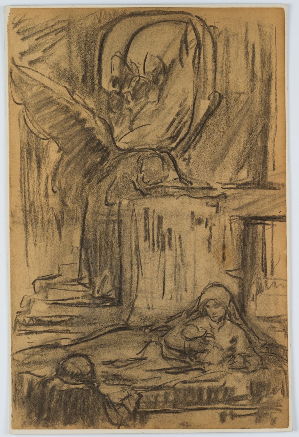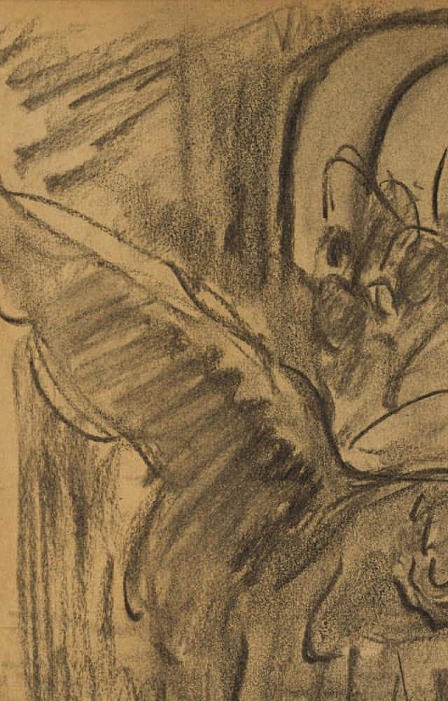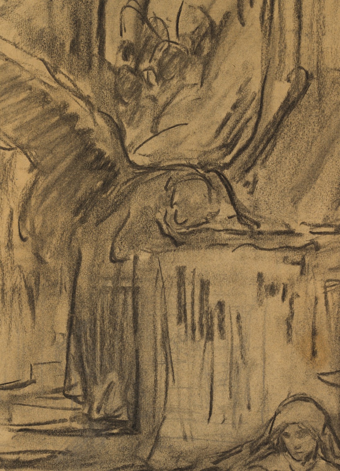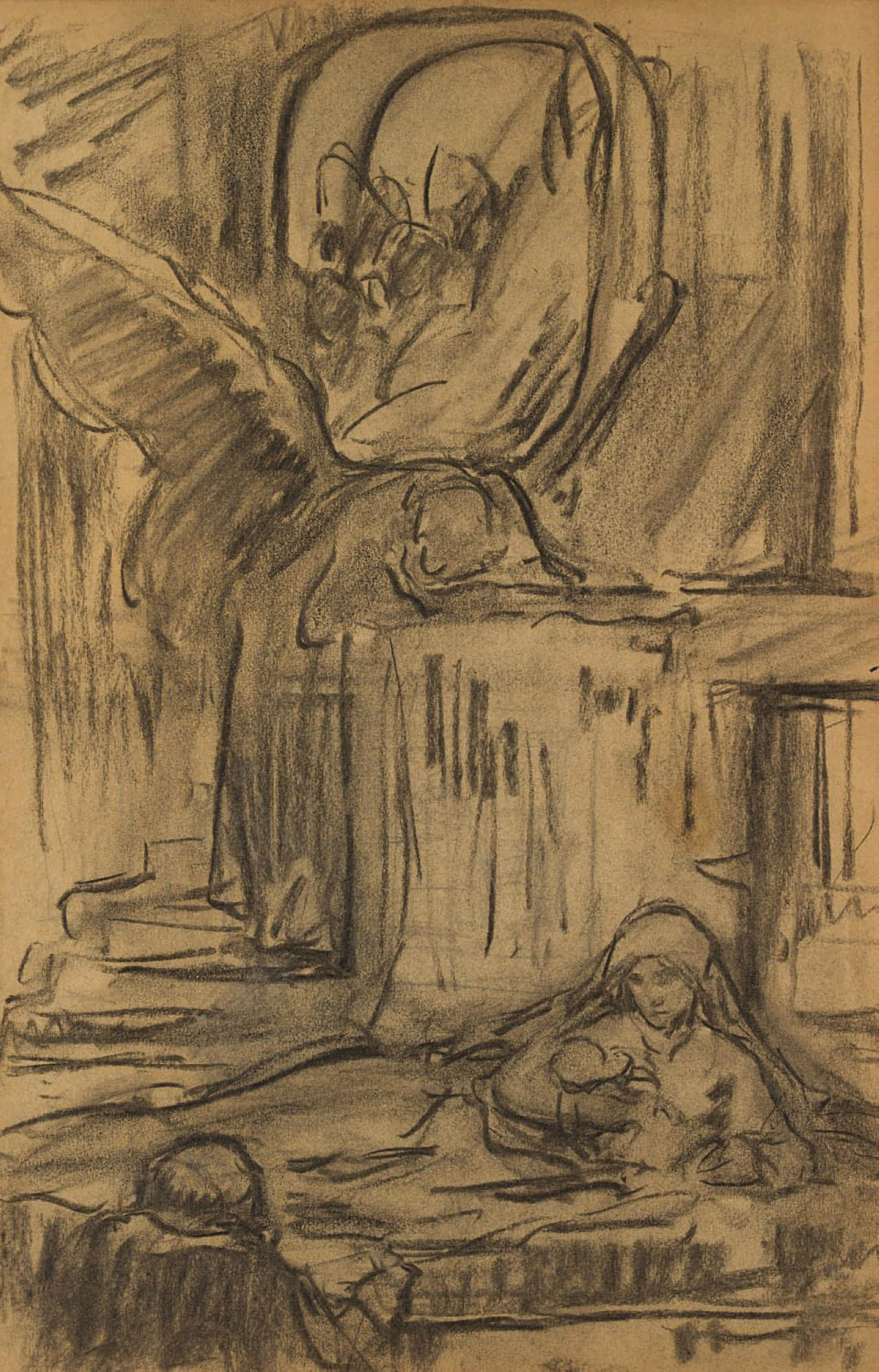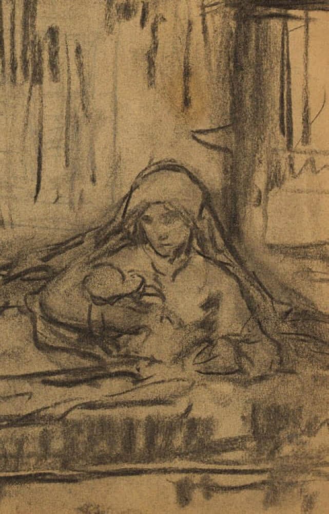 Otto Friedrich Wolff (1855 Oschatz – 1940 Munich), Religious scene (peace on the run?), c. 1890, Charcoal