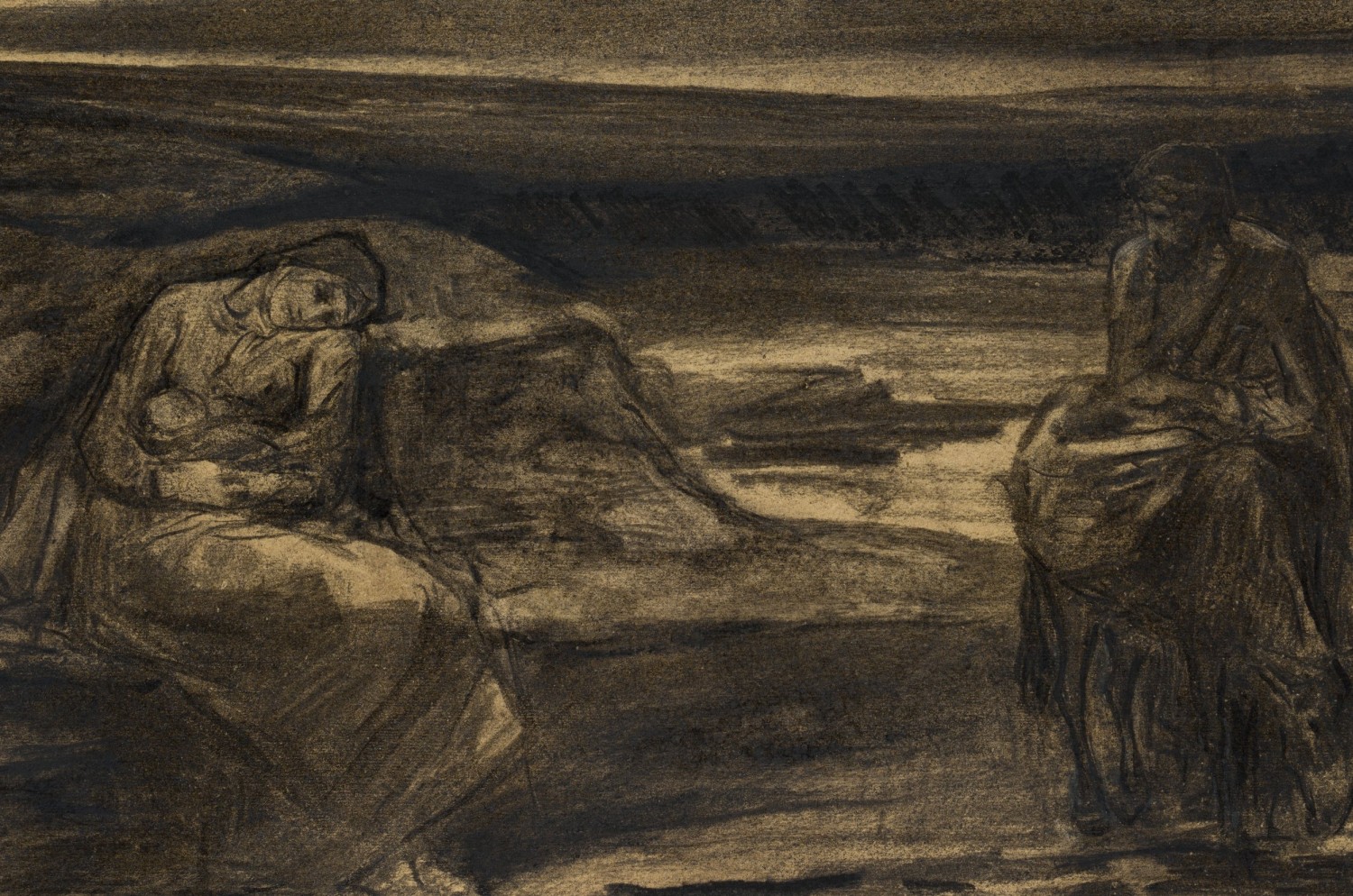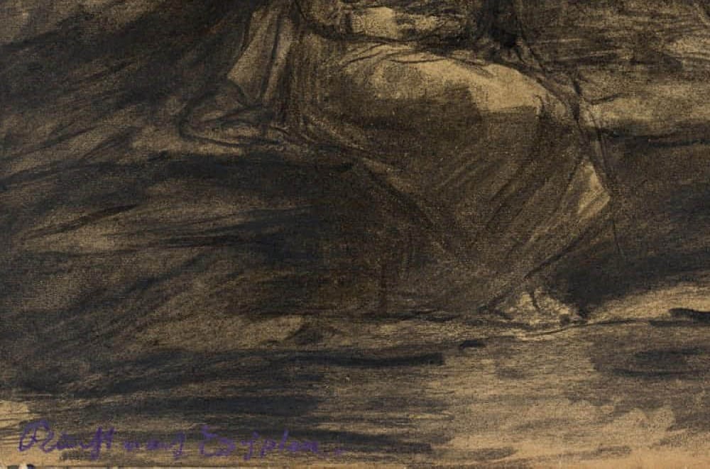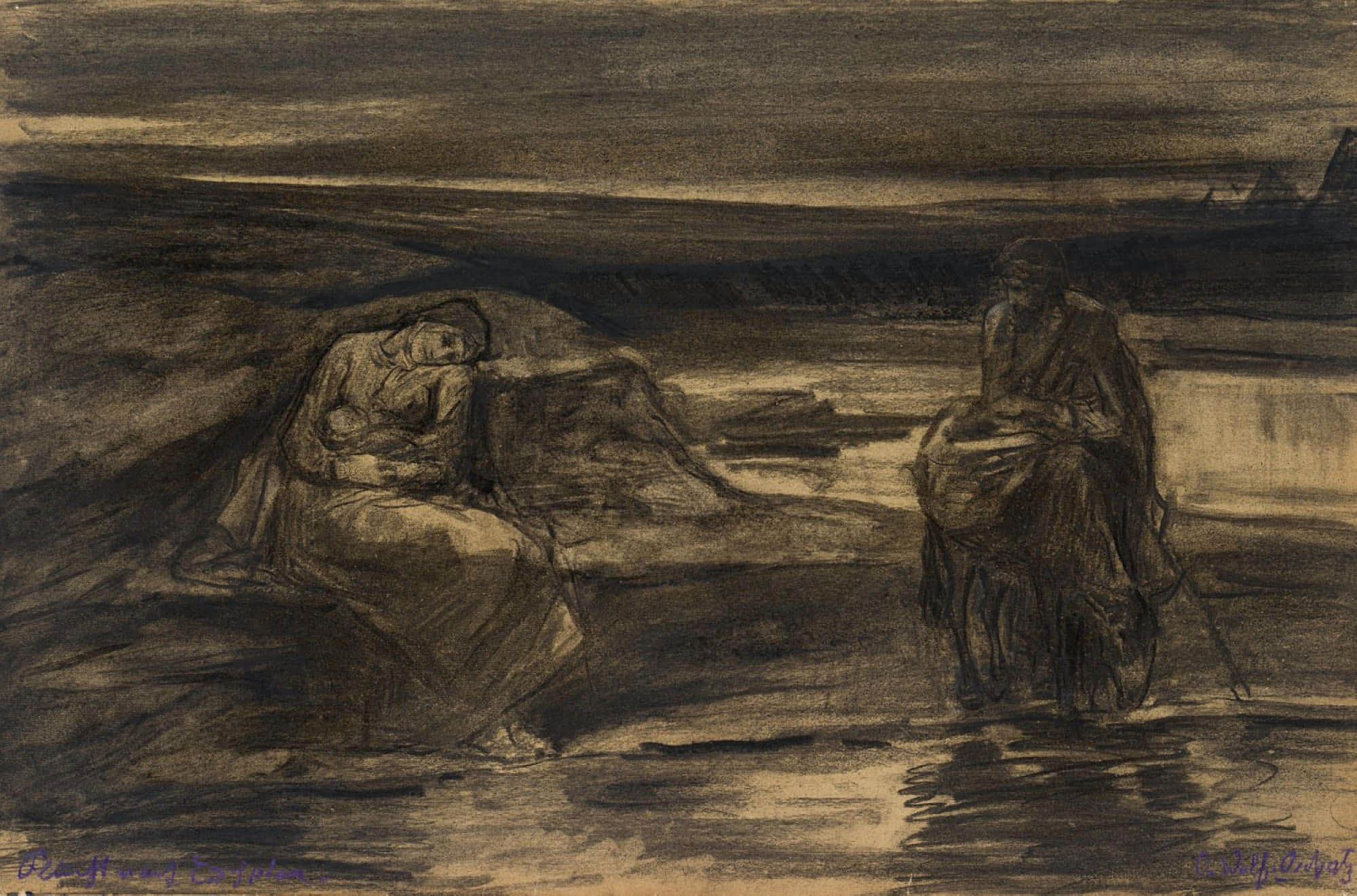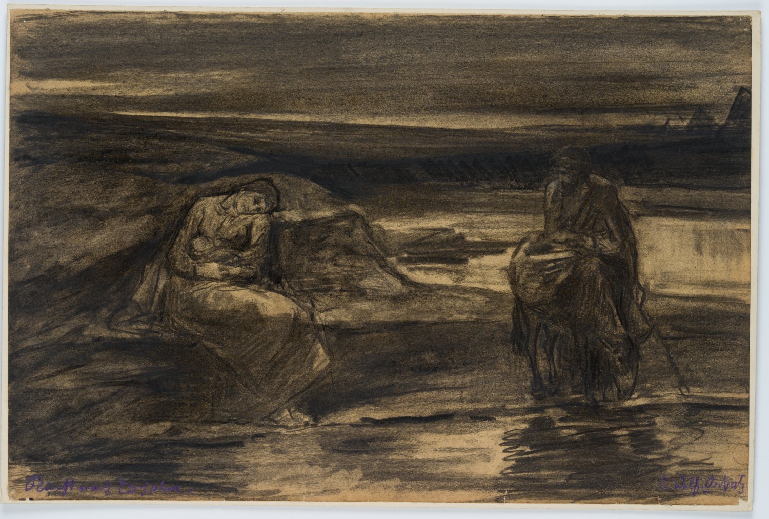 Otto Friedrich Wolff (1855 Oschatz – 1940 München), Ruhe auf der Flucht, um 1890, Kohle