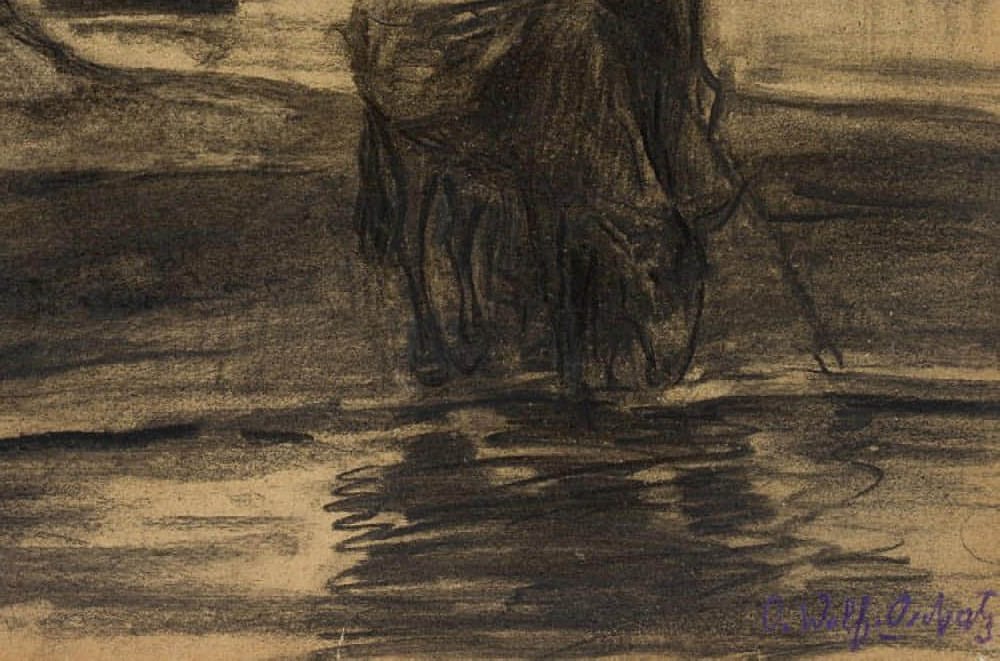 Otto Friedrich Wolff (1855 Oschatz – 1940 Munich), Peace on the run, c. 1890, Charcoal