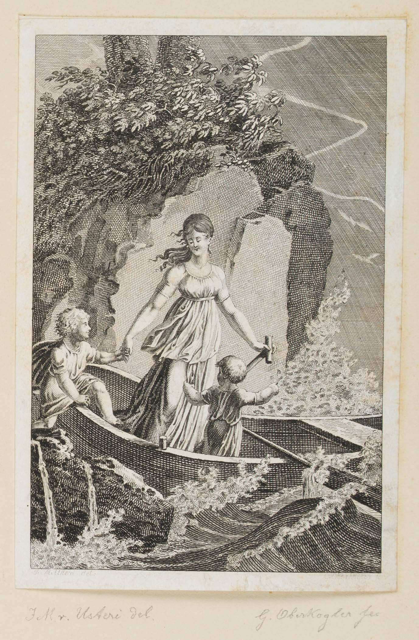 - Bezeichnung: Unten mittig im Druck signiert: “J M Usteri del: | G Oberkogler Sc”.