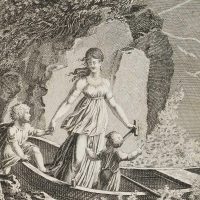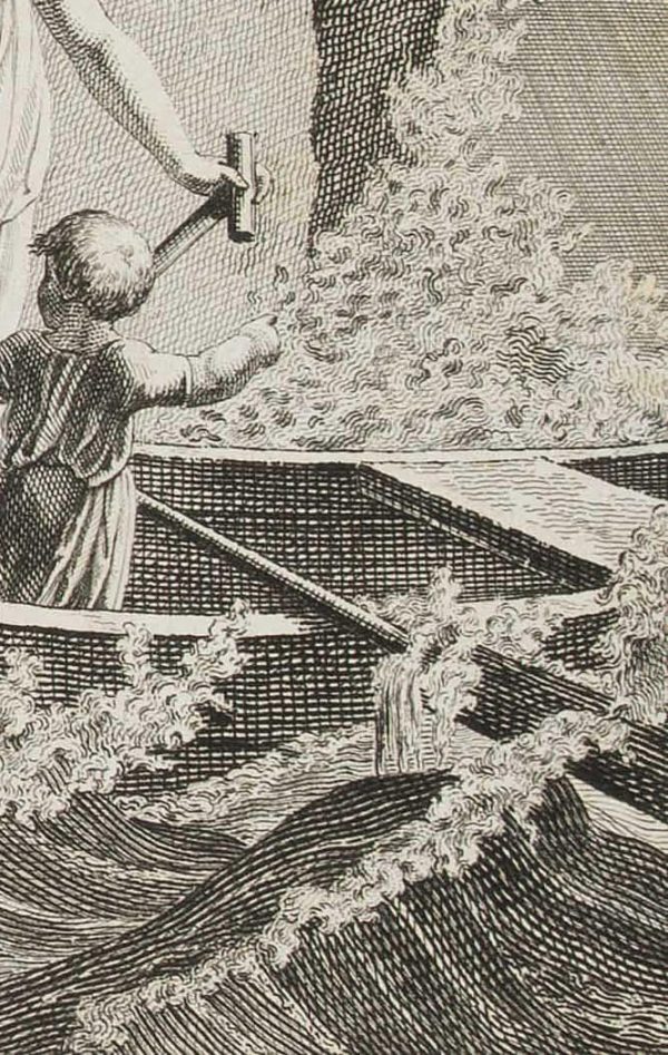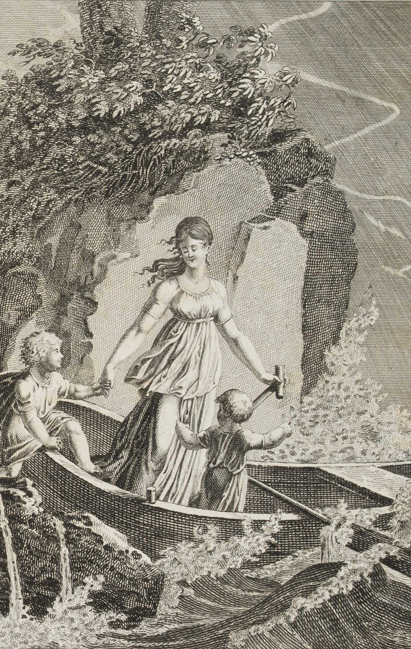 Georg Christoph Friedrich Oberkogler (1774 Augsburg – 1856 Zurich) after Johann Martin Usteri (1763 Zurich – 1827 Rapperswil), Stormy sea with woman with children in the boat, c. 1800, Etching