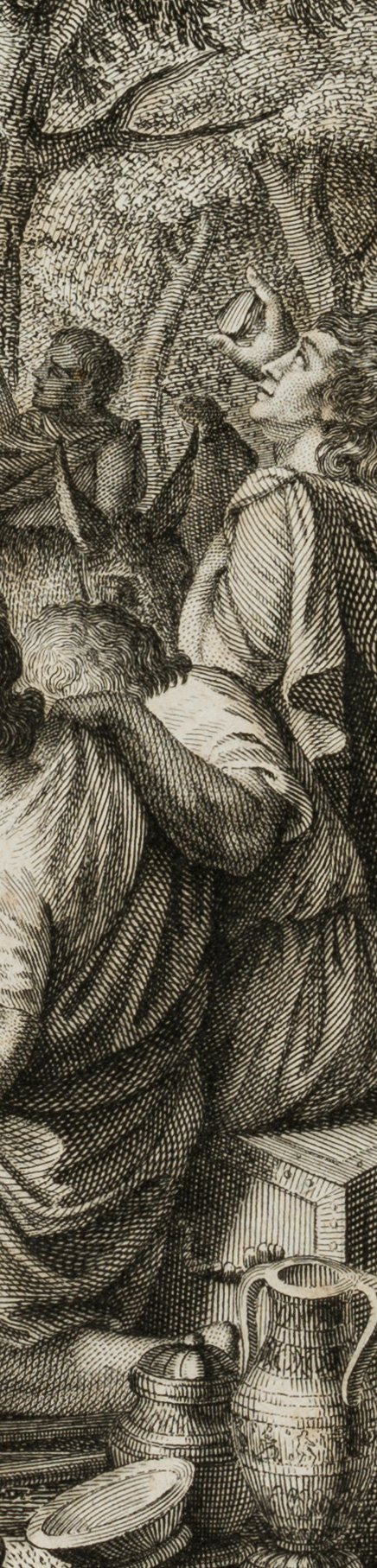 - Zustand: Das Blatt ist gebräunt und stockfleckig, mit bräunlichem Fleck im Hintergrund der Darstellung; rechte untere Ecke leicht verschmutzt und knickspurig.