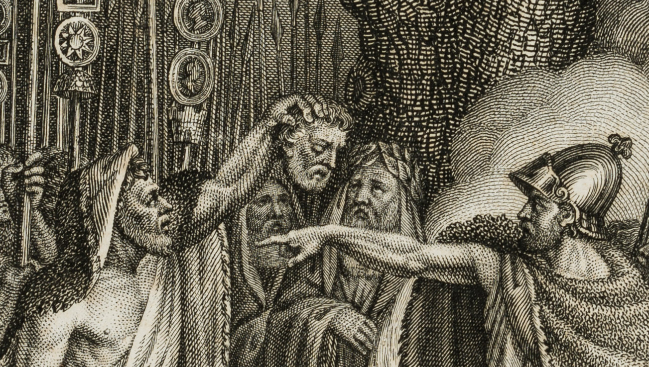 François Jacques Oberthür (1793 Straßburg – 1863 Bischweiler) nach Johann Michael Mettenleiter (1765 Großkuchen – 1853 Passau), Cherusker, “Niederlage des Varus”, Teutoburger Wald, 1823, Radierung