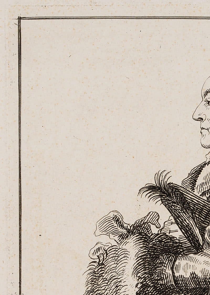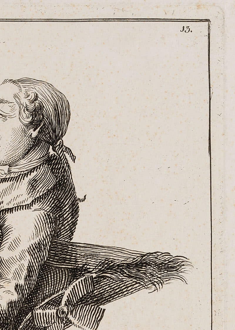 • Beschreibung: Aus einer Serie von satirischen Porträts und Karikaturen der höfischen Gesellschaft Mitte des 18. Jahrhunderts.