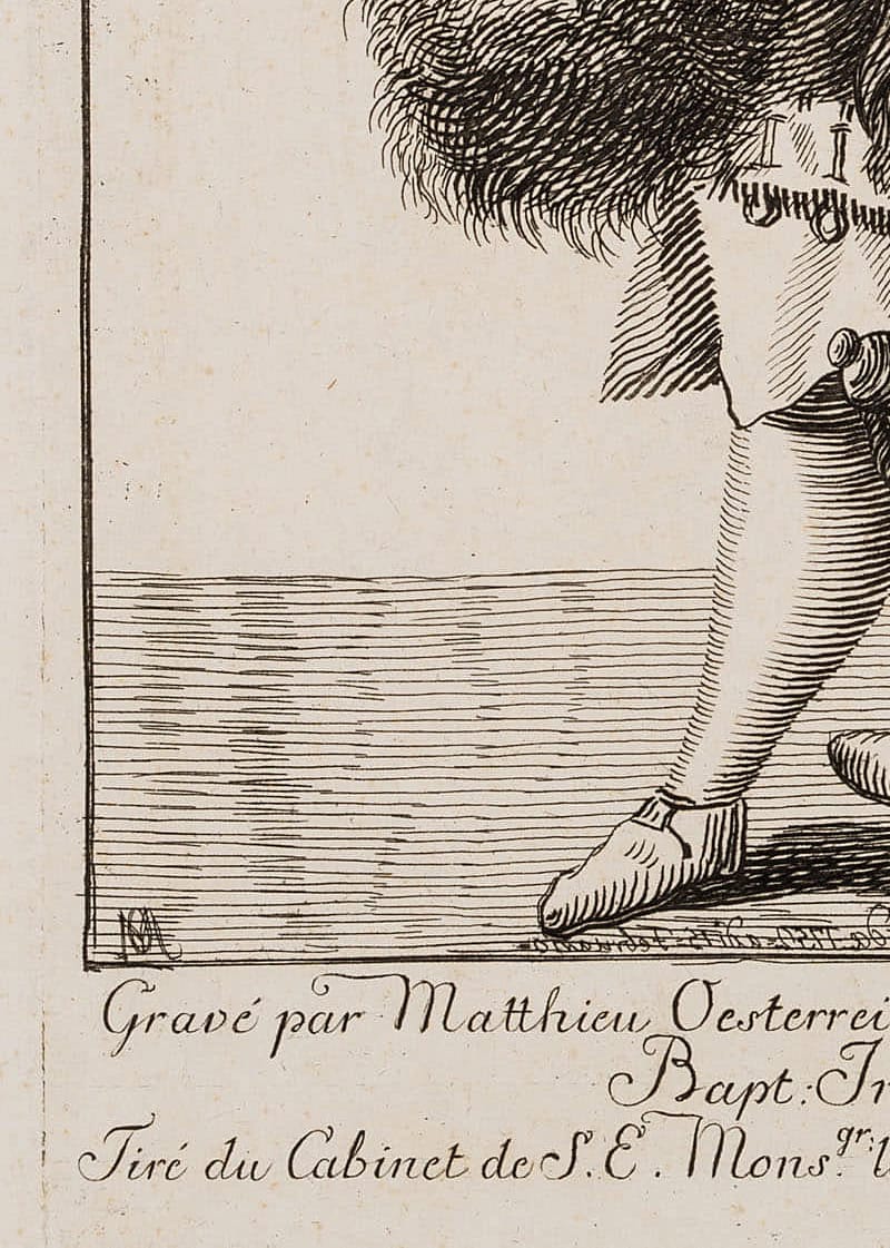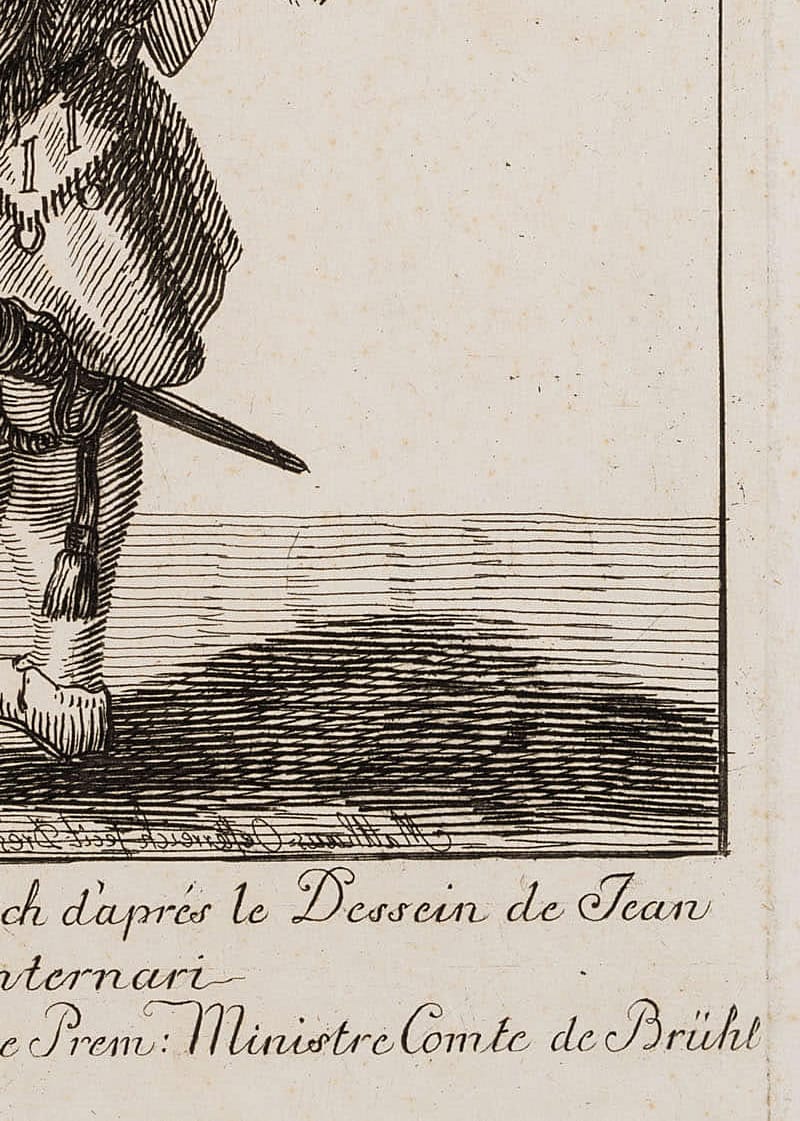 • Inscription: lower left signed in the printing plate: “MO”. Lower middle inscribed in the printing plate: “Matthias Oesterreich fecit 1750 Dresdae ad 15 Februario [in Spiegelschrift]”.