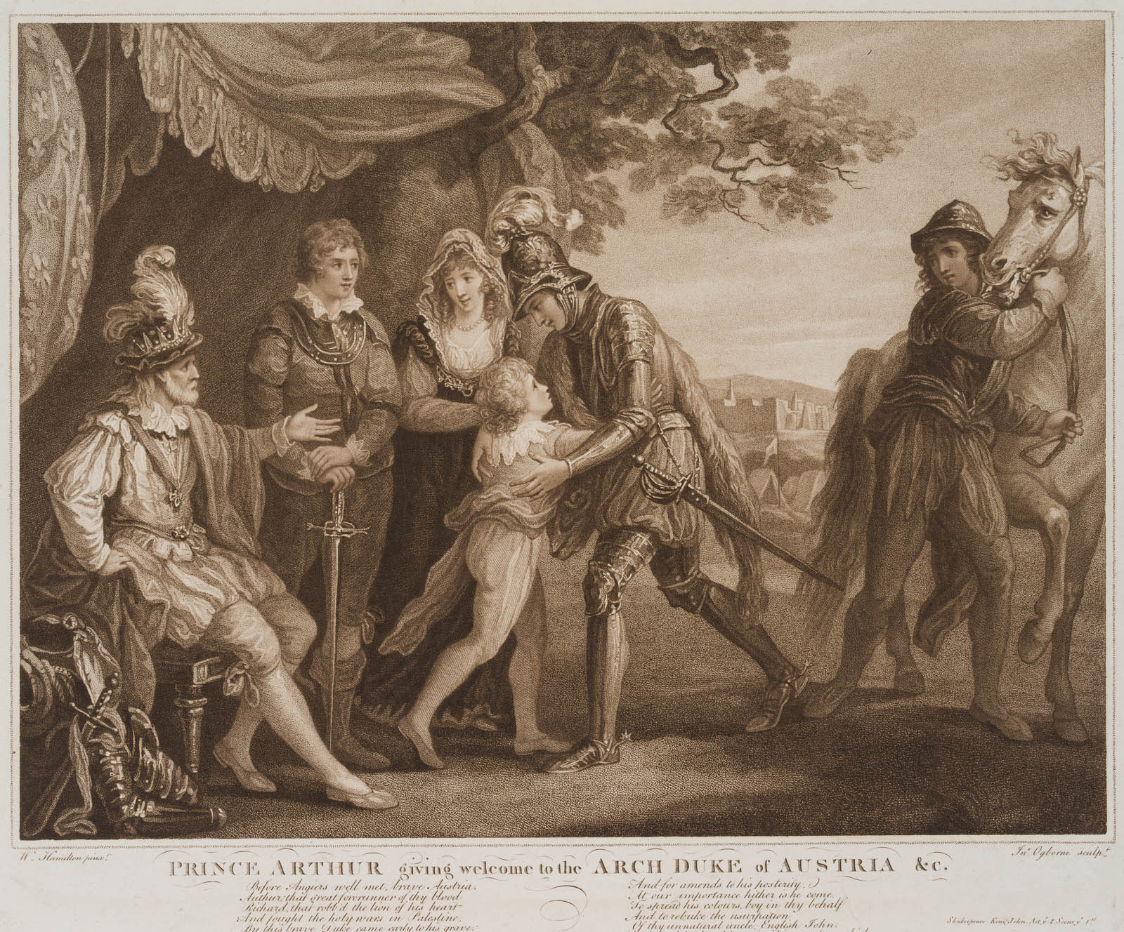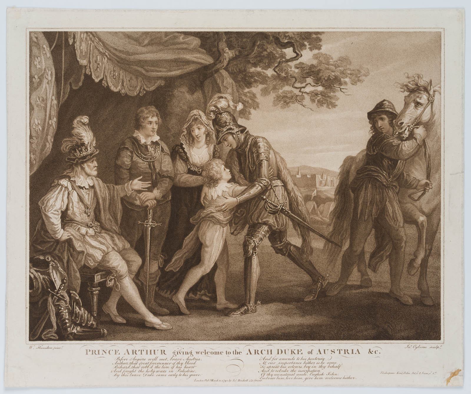 John Ogborne (1755 – 1837 ) after William Hamilton (1751 London – 1801 ibid.), “Prince Arthur giving welcome to the Arch Duke of Austria & c”, nach Shakespeare, King John, 1791, Crayon manner