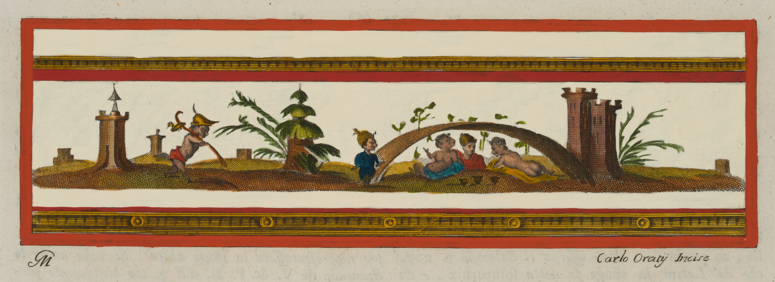 - Keywords: Pompeii, Herculaneum, fresco, Roman mural, ancient culture, classicism, Pompeian style, antiquity, dwarf, landscape, fantasy, 18th century, Roman, Fantasy, Italy,