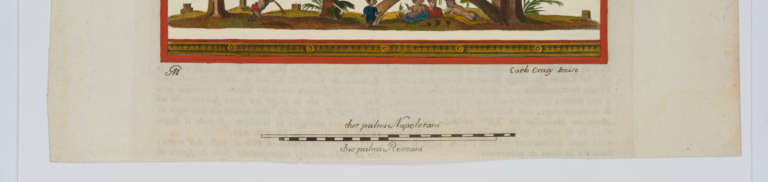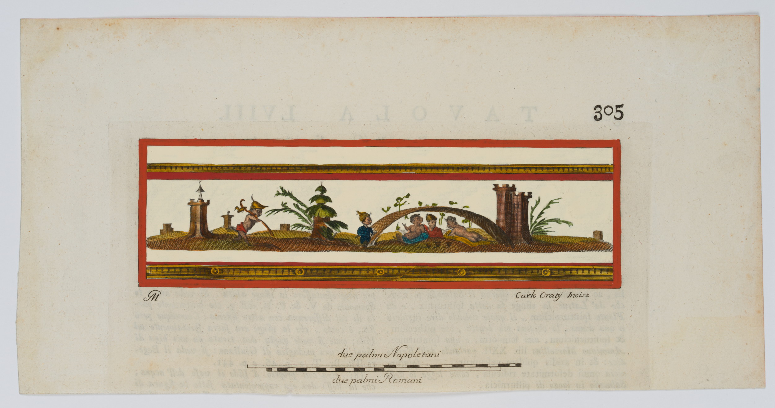 - Inscription: Lower middle signed in the printing plate: “CM | Carlo Oraty Incise”. Lower middle inscribed in the printing plate: “due palmi Napoletani | due palmi Romani”. Upper right numbered in the printing plate: “305”.
