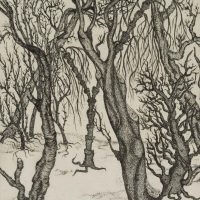 von der Osten-Sacken (20th century), Old growth, trees in winter, c. 1940, Etching