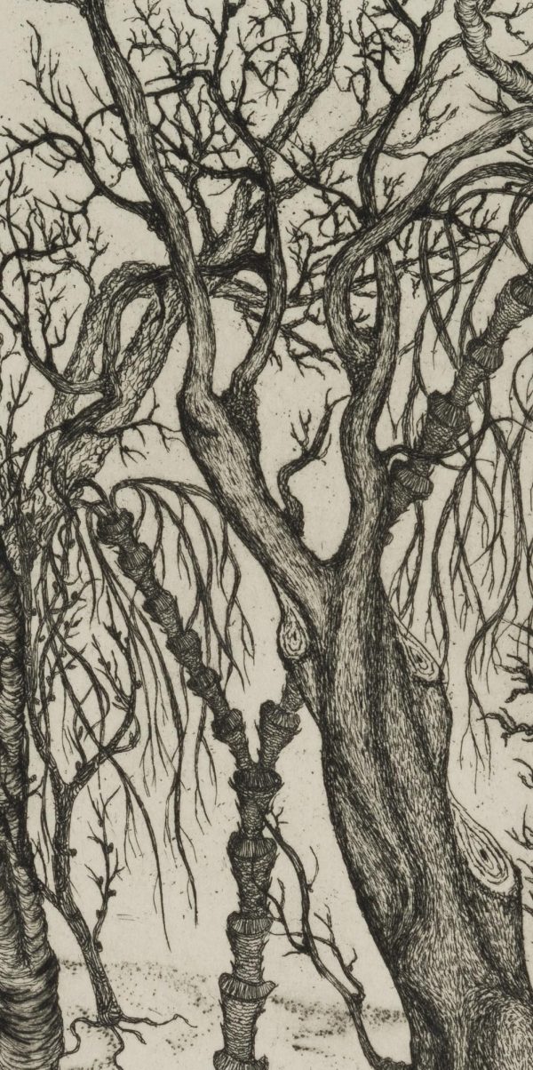 von der Osten-Sacken (20. Jahrhundert), Altes Gehölz, Bäume im Winter, um 1940, Radierung