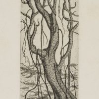 - Bezeichnung: Rechts unter der Darstellung signiert. In den Ästen des Baumes lassen sich sehr merkwürdige Wuchsformen entdecken, die die Fantasie stark anregen und zum langen betrachten einladen.