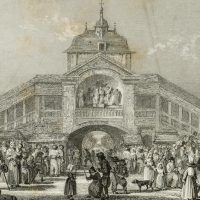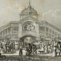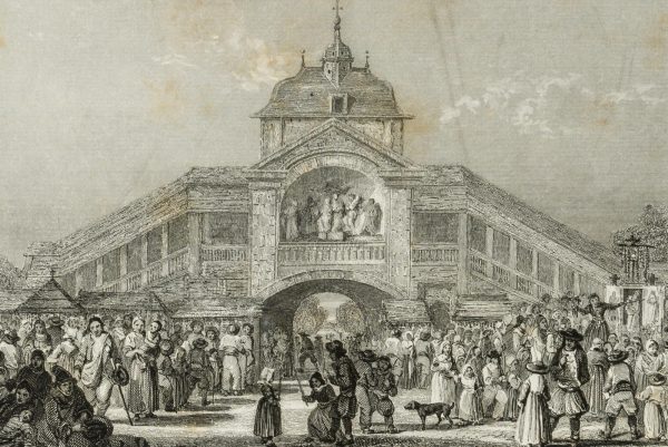 Jean Jacques Outhwaite (before 1836 – after 1879 ) after Jules Achilles Noel (1810 Quimber /Nancy – 1881 Algiers), Sanctuary of Sainte Anne d’Auray with a view of the Holy Stairs, the Scala Sancta, populated by pilgrims, 1850, Steel engraving