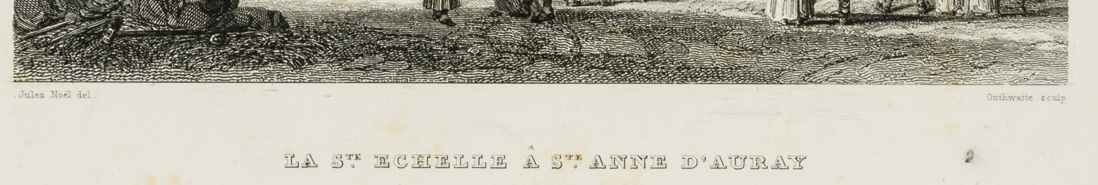 - Inscription: Signed “Jules Noel del.” below the print on the left and “Outhwaite sculp” on the right. Inscribed below with ” LA Ste. ECHELLE A Ste ANNE D’AURAY.”