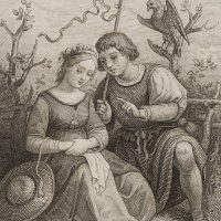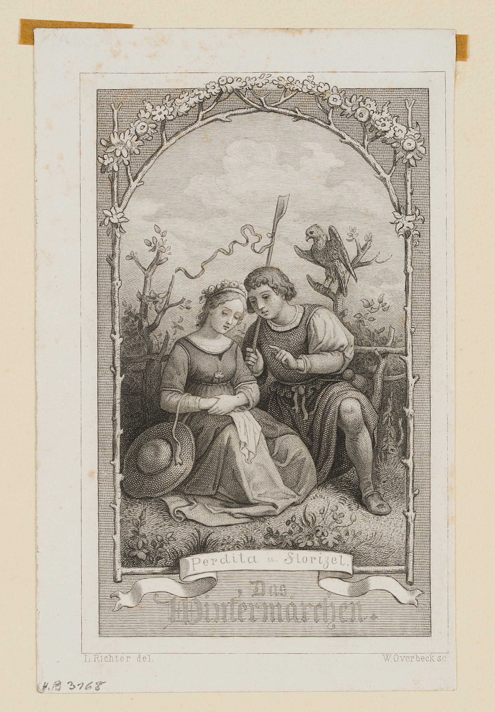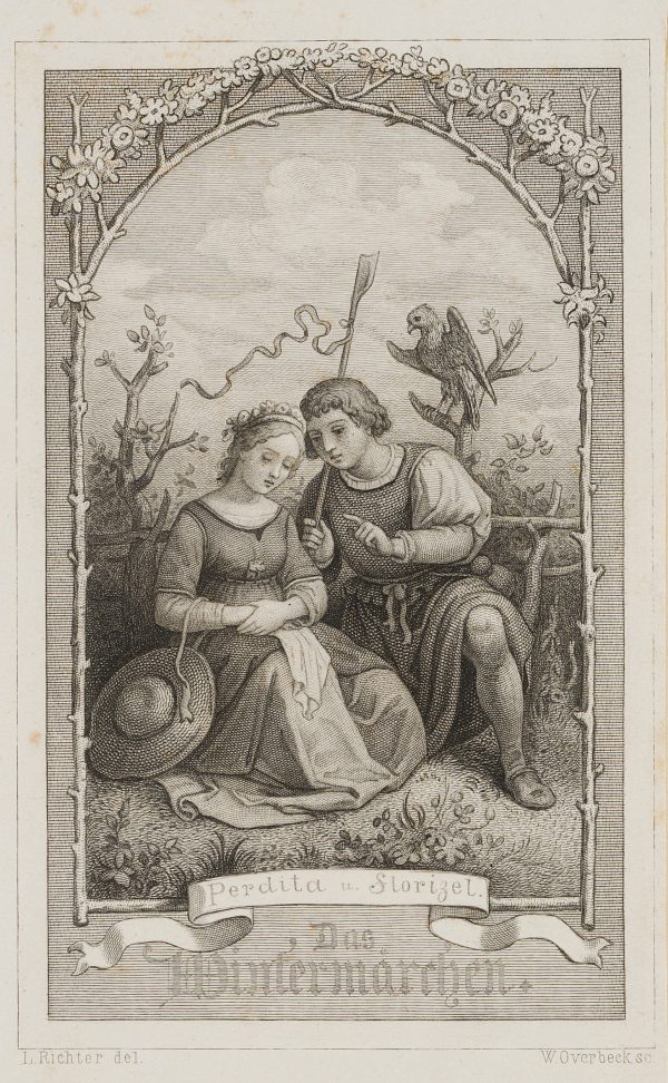 - Bezeichnung: Unten im Druck signiert: „L. Richter del. / W. Overbeck sc.“. Unten im Druck bezeichnet: „Perdita u. Florizel / Das Wintermärchen“.