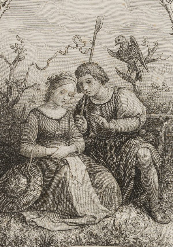 Carl Wilhelm Overbeck (1820 Halle on the Saale – 1860 Dresden) after Ludwig Richter (1803 Dresden – 1884 ibid.), Cover of Shakespeare’s drama The Winter’s Tale, 1851, Steel engraving