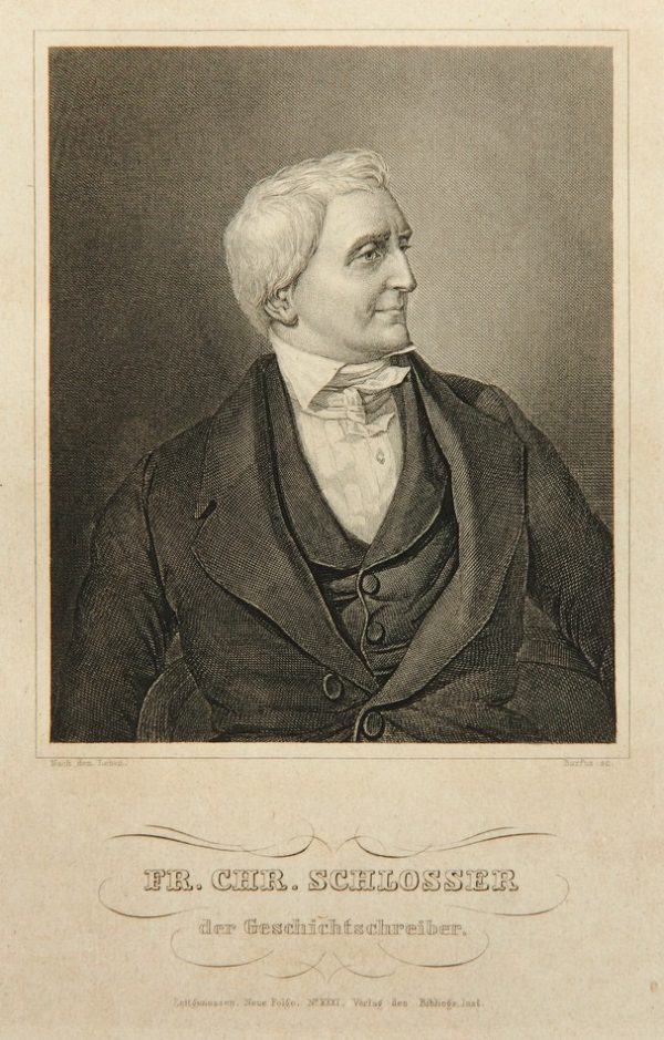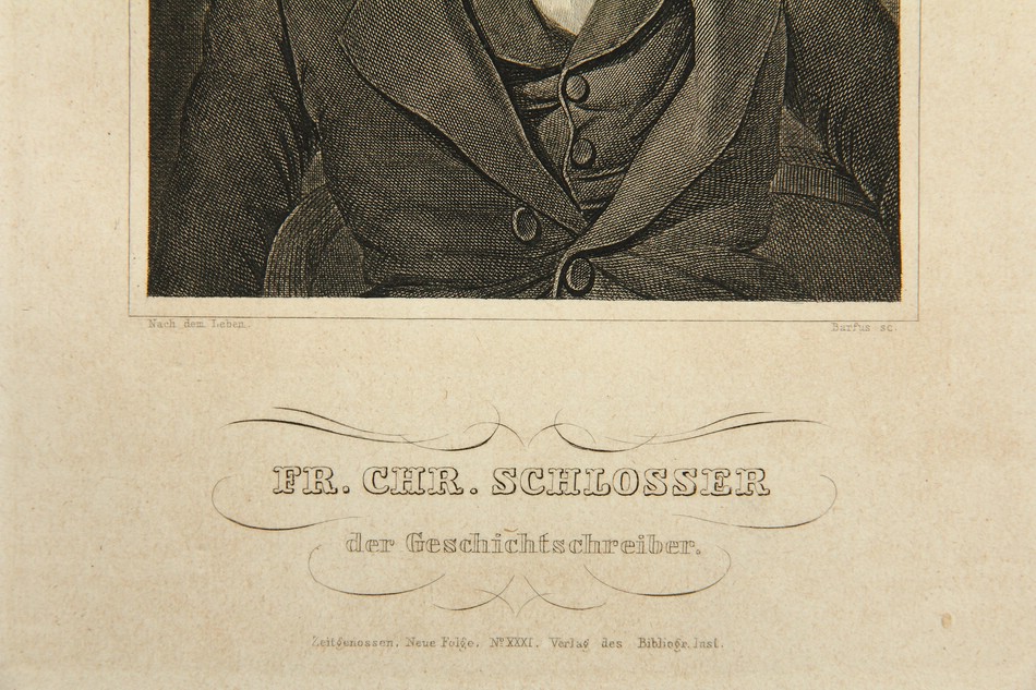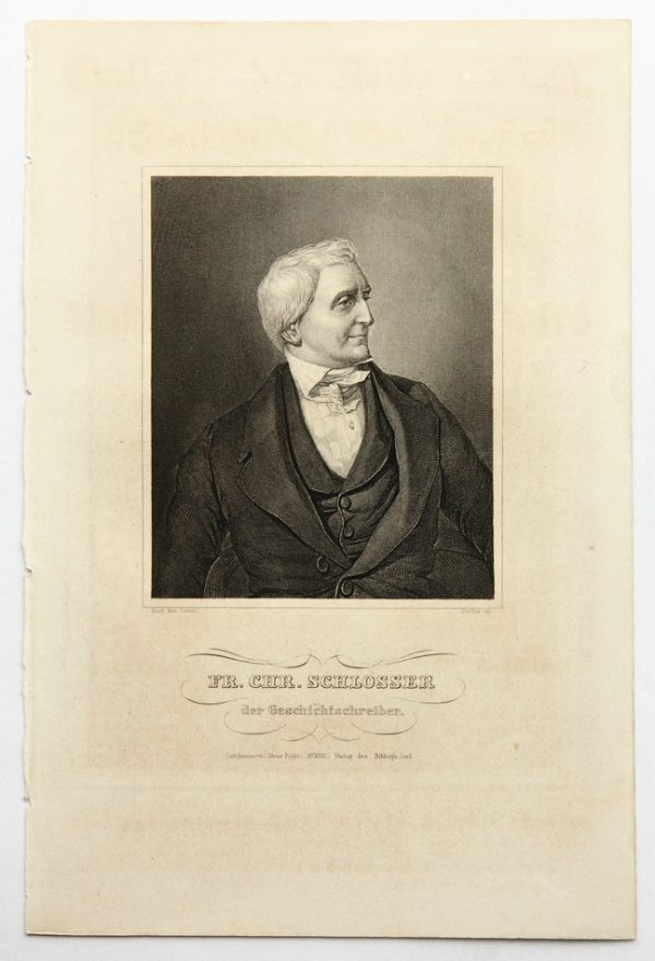 Paul Barfuß (1823 Großgründlach – 1895 München), Porträt des Historikers Fr. Chr. Schlosser(*1776), 19. Jahrhundert, Stahlstich