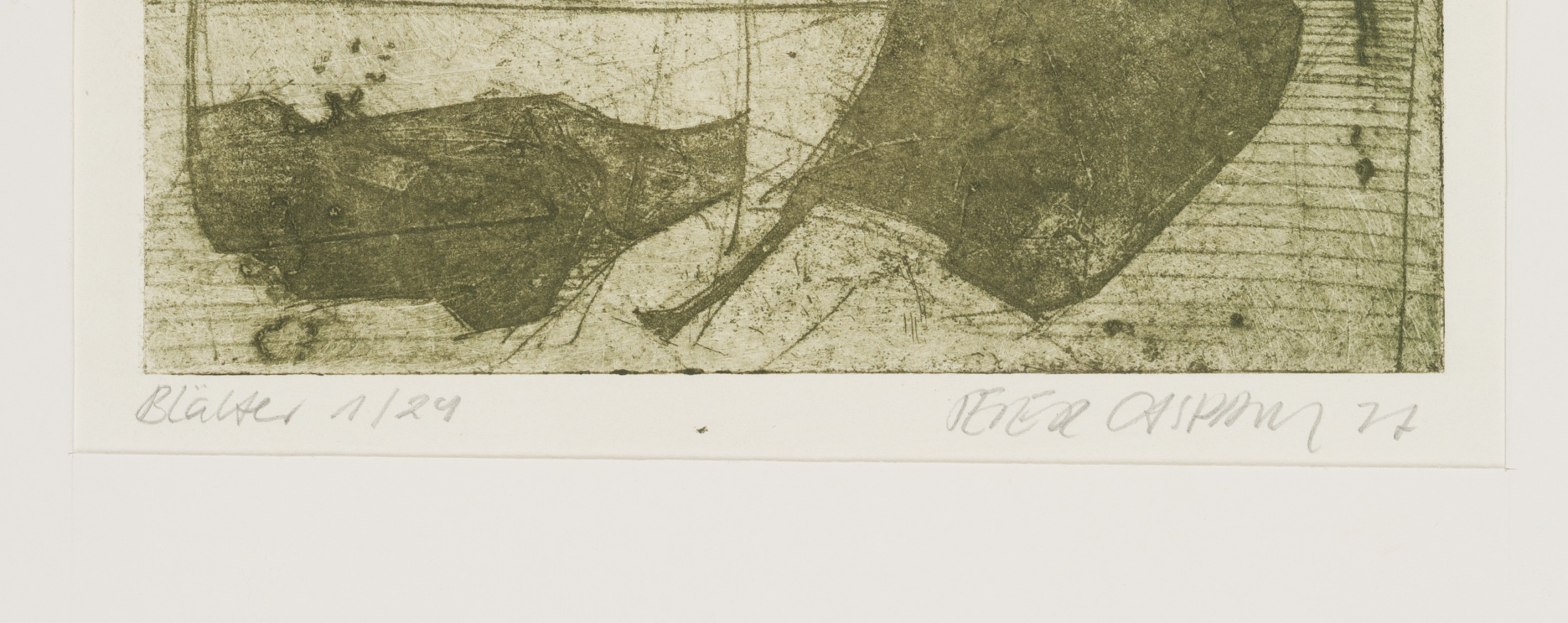 - Inscription: Lower right signed: “Peter Caspary 77”. lower left inscribed by the artist’s hand: “Blätter 1/24”.