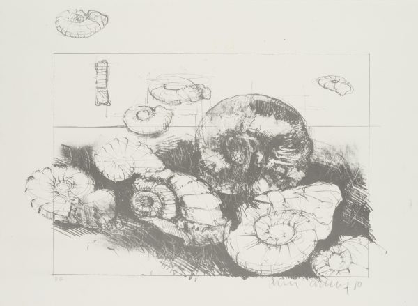 Peter Caspary (*1953 Wuppertal), Probedruck. Muscheln, 1980, Lithographie